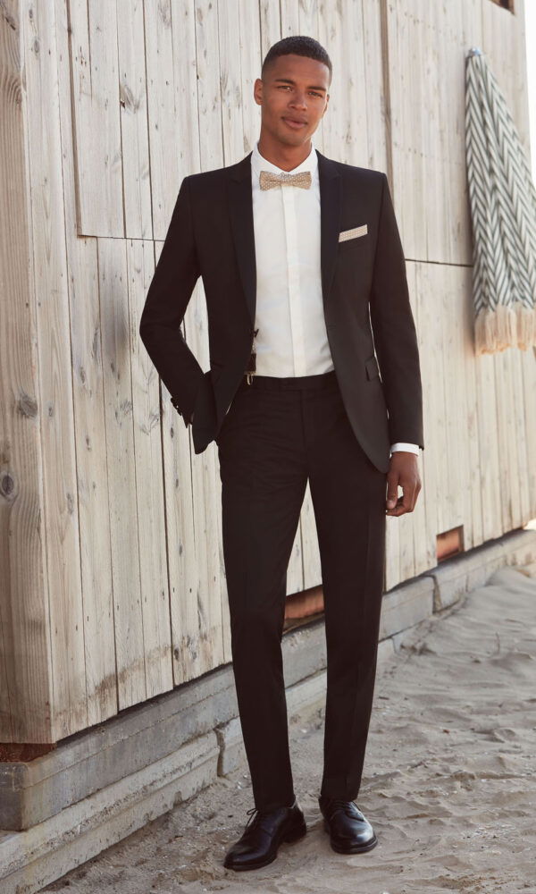 Een nieuwe productgroep van de collectie zijn schoenen en riemen. De nieuwe kalfsleren schoenen met logo branding op de flex zool garanderen uithoudingsvermogen tijdens lange feestavonden. Om de harmonieuze look perfect te maken, wordt de outfit aangevuld met een riem in hetzelfde leer en dezelfde kleur.