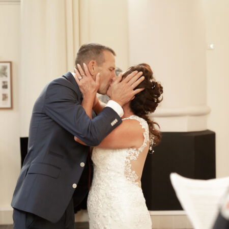 “Drie maanden nadat Erik me ten huwelijk vroeg zijn we getrouwd. De ringen, mijn outfit en het trouwpak hadden we allemaal in drie dagen geregeld. Door de beperkingen die toen nog golden kozen we ervoor om thuis een feesttent neer te zetten waar de gasten genoeg ruimte hadden. De catering, bruidstaart, fotograaf en videograaf werden allemaal geregeld door vrienden en bekenden: die persoonlijke touch was echt een rode draad door de hele dag heen.”