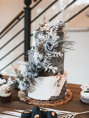 Een taart in de kleuren van je bruiloft ziet er bijzonder mooi uit. Versier ‘m met vers fruit of bloemen. Ook gedroogde bloemen zijn een blikvanger. Alternatieven op de klassieke bruidstaart