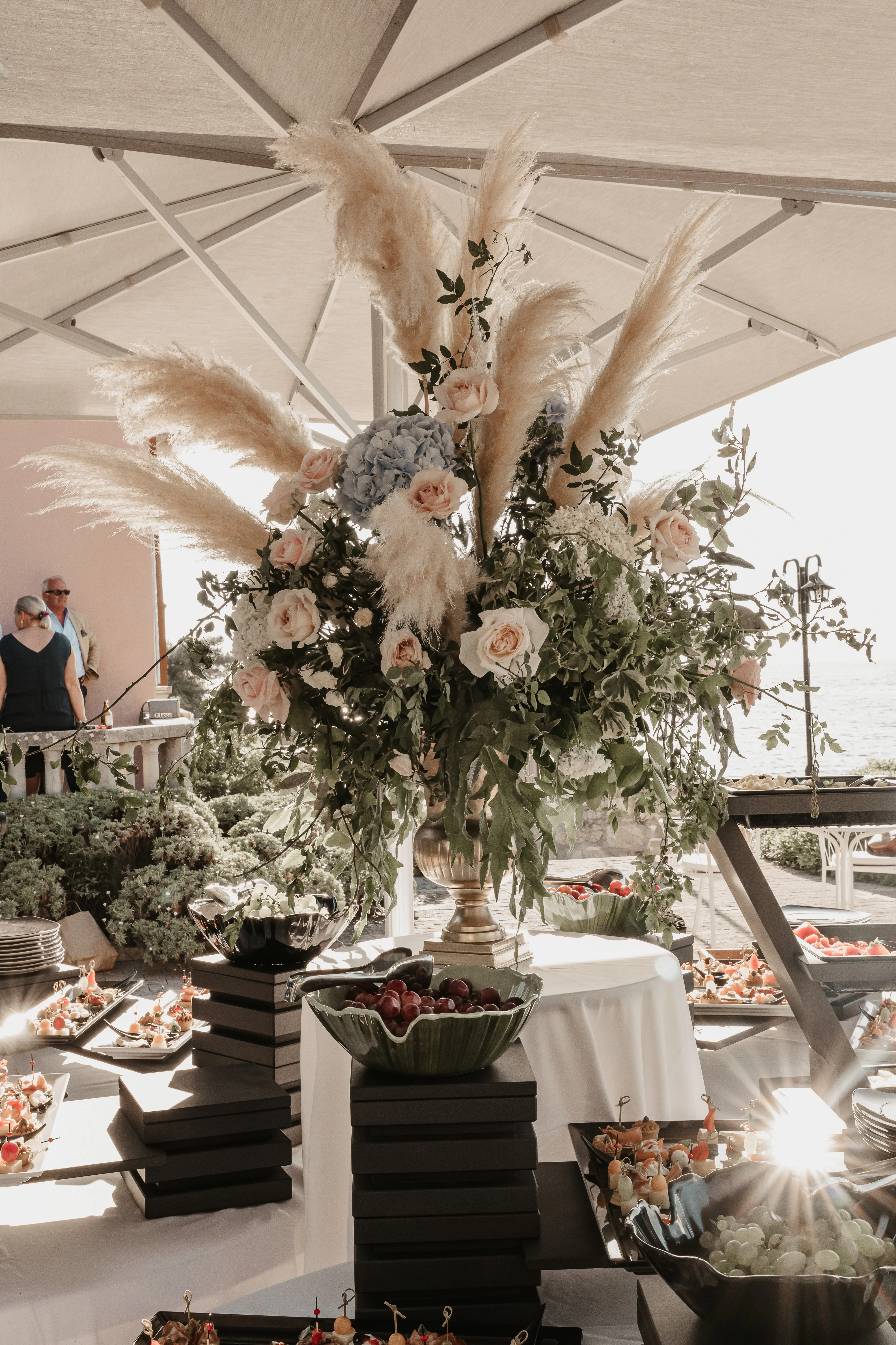 Plan kleine geschenken voor je gasten: een SOS-mandje in de badkamer, parasols of paraplu’s (afhankelijk van het weer), gezellige dekens voor koele nachten en kleine cadeautjes op hun stoel.