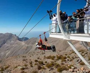 In het noorden van de Verenigde Arabische Emiraten ligt Ras al-Khaimah. Avontuurlijke reizigers halen hun hart op bij de snelste tokkelbaan ter wereld met een lengte van 2830 meter. De zweeftocht vanaf de top van Jebel Jais, de hoogste berg van de emiraten, duurt drie minuten.