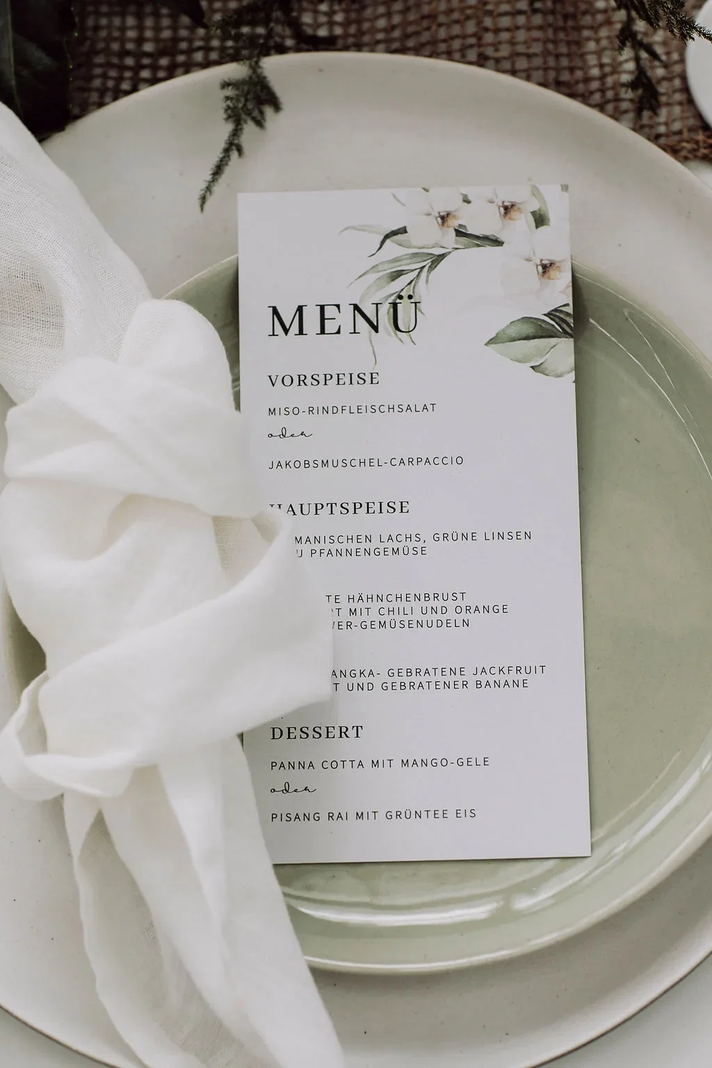 Zelfs als de deco-focus ligt op weelderige groene planten, mogen bloemen natuurlijk niet ontbreken op een Balinese bruiloft. Witte orchideeën zijn een perfecte keuze. Ze zijn eenvoudig en toch heel elegant en sierlijk, ook prachtig voor het bruidsboeket.