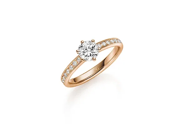 4. De ring van Ole Lynggaard heeft een grote diamant in het midden en is afgewerkt met kleine steentjes aan de zijkant.