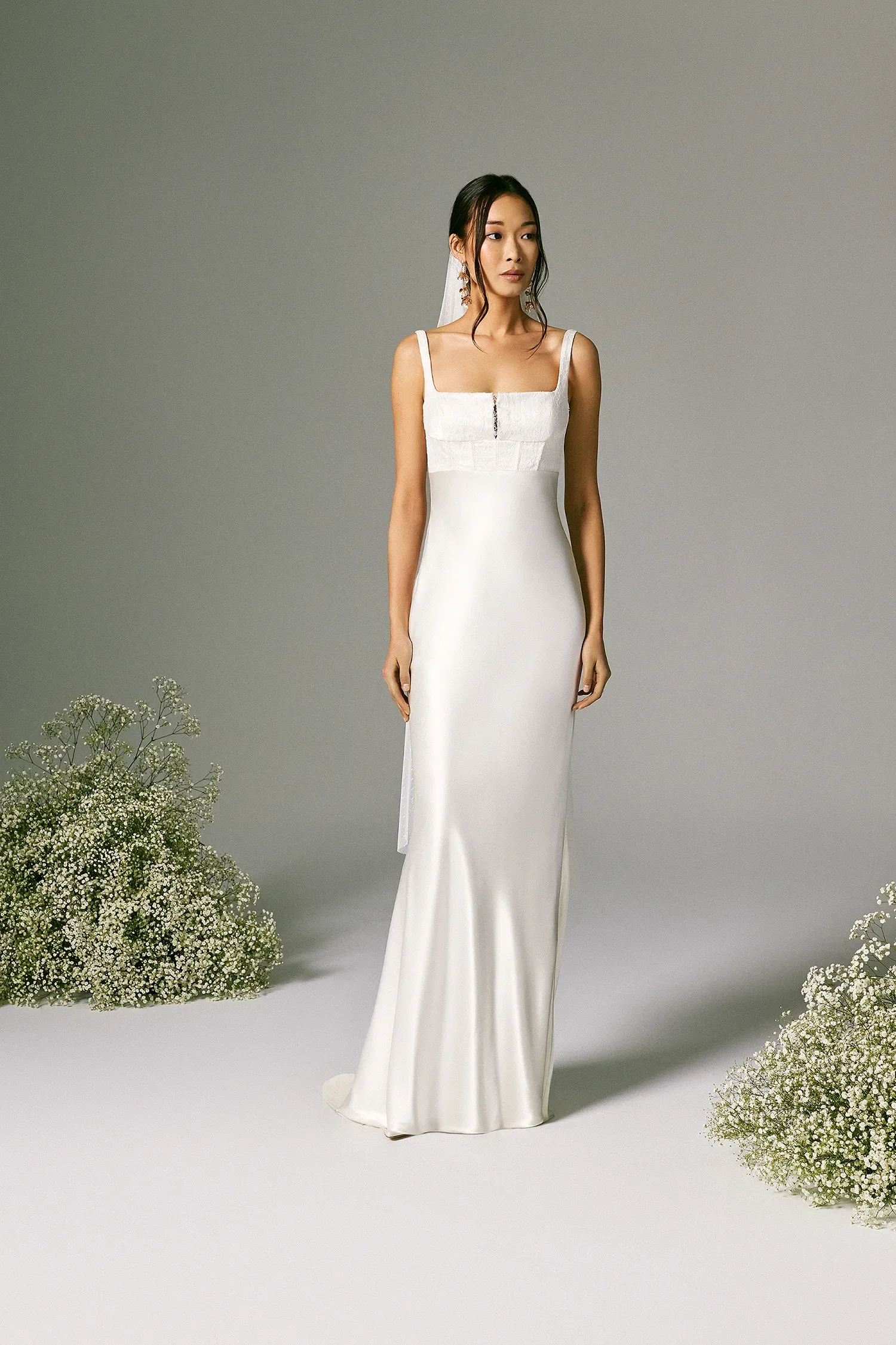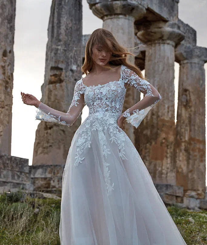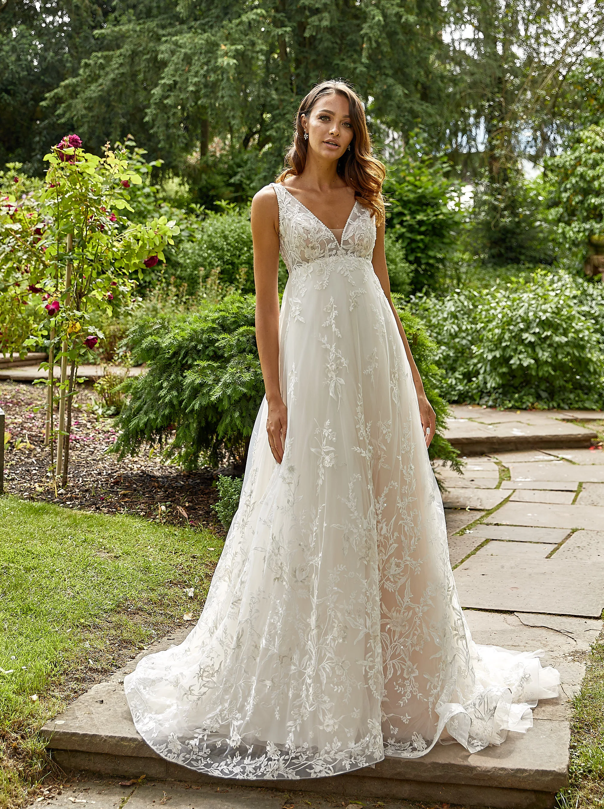Minimalistisch, clean en chic: trouwjurken met een Empire-silhouet zijn een fantastisch alternatief voor elk bruid die droomt van een eenvoudige trouwjurk in Bridgerton-stijl. Mooi kant speelt de hoofdrol in deze trouwjurken.