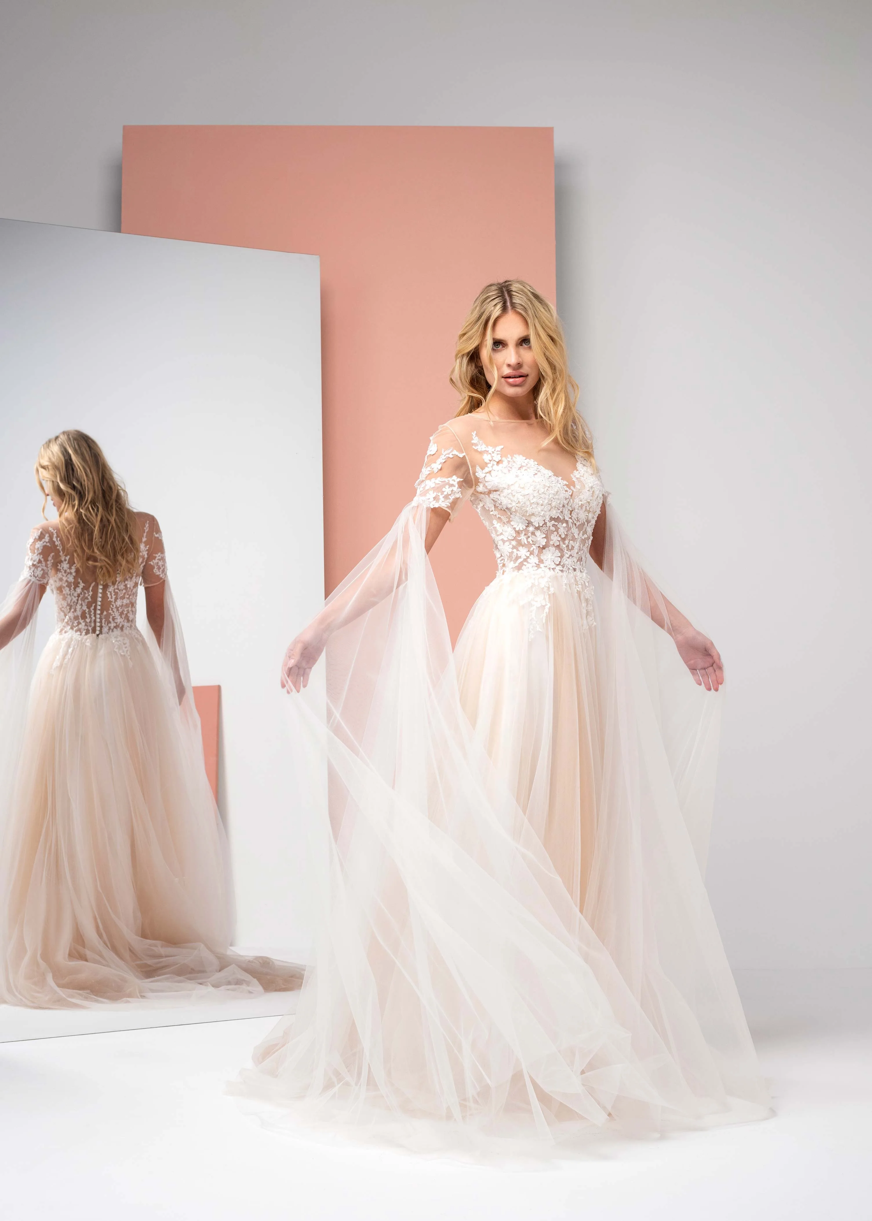 Wat is een Bridgerton-bal zonder bloemen? De hele serie betovert met romantische, kleurrijke bloemen: in de decoratie en natuurlijk in de jurken van de dames. Hoe je dit kunt verwerken in je bridal look? Door te kiezen voor een trouwjurken versierd met bloemenkant, 3D-bloemen en bloemenborduurwerk. Hier zijn een paar van onze favoriete modellen.