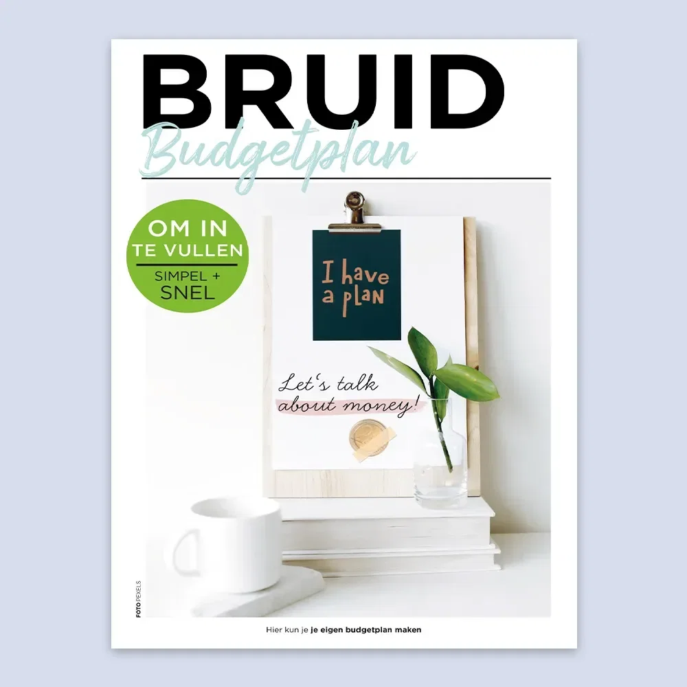 Het BRUID Budgetplan is een onmisbaar hulpmiddel voor elk koppel dat in het huwelijksbootje stapt (al zeggen we het zelf). Het plan is speciaal ontworpen om jullie te helpen bij het plannen en budgetteren van jullie grote dag. In het budgetplan vind je alle elementen van een huwelijk die je maar kunt bedenken en deze zijn overzichtelijk verdeeld in negen categorieën, zodat je eenvoudig het overzicht kunt bewaren. Binnen elke categorie vind je bovendien specifieke onderdelen, zodat je precies weet welke kostenposten er zijn en waar je rekening mee moet houden.
