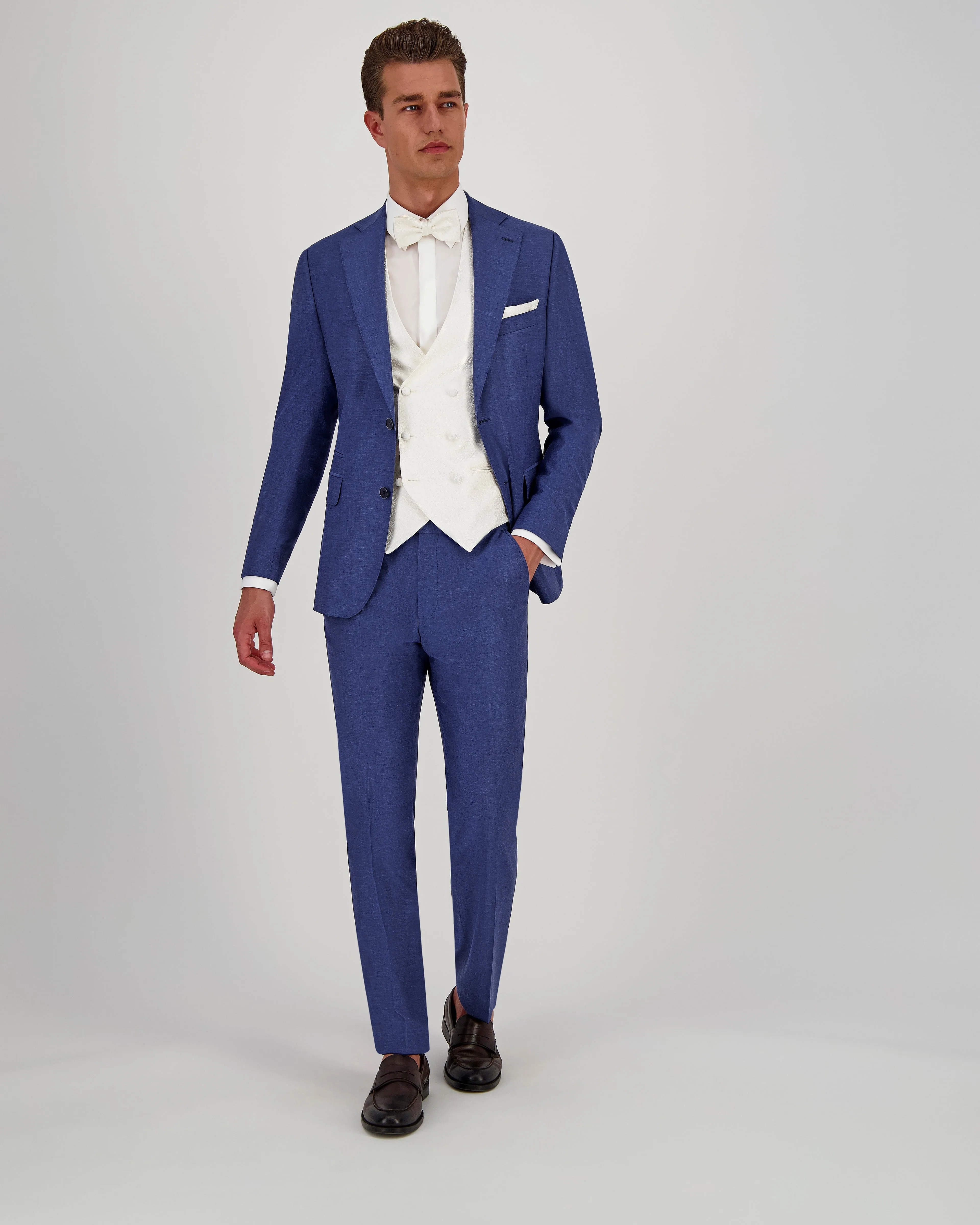 Dit is een moderne keuze die een slanker figuur benadrukt. Dit ontwerp is perfect voor bruidegoms die een trendy look willen en niet bang zijn voor een strakkere pasvorm.