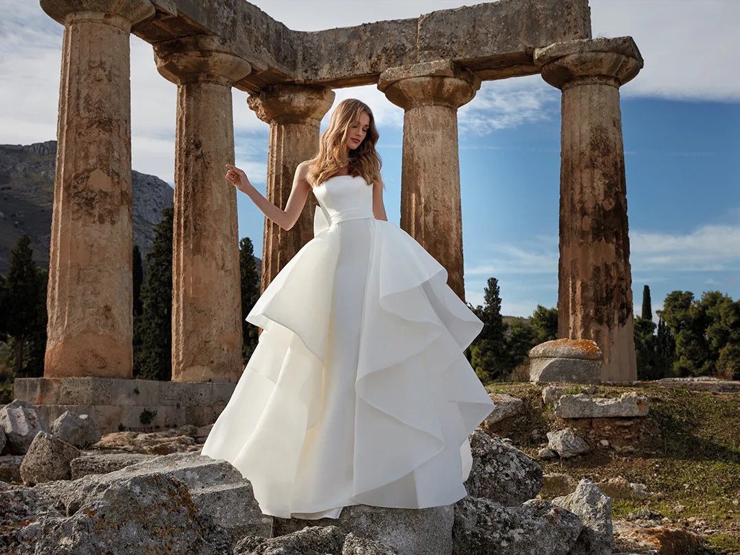 2. Luxueuze gedrappeerde bruidsjurk van Pollardi.