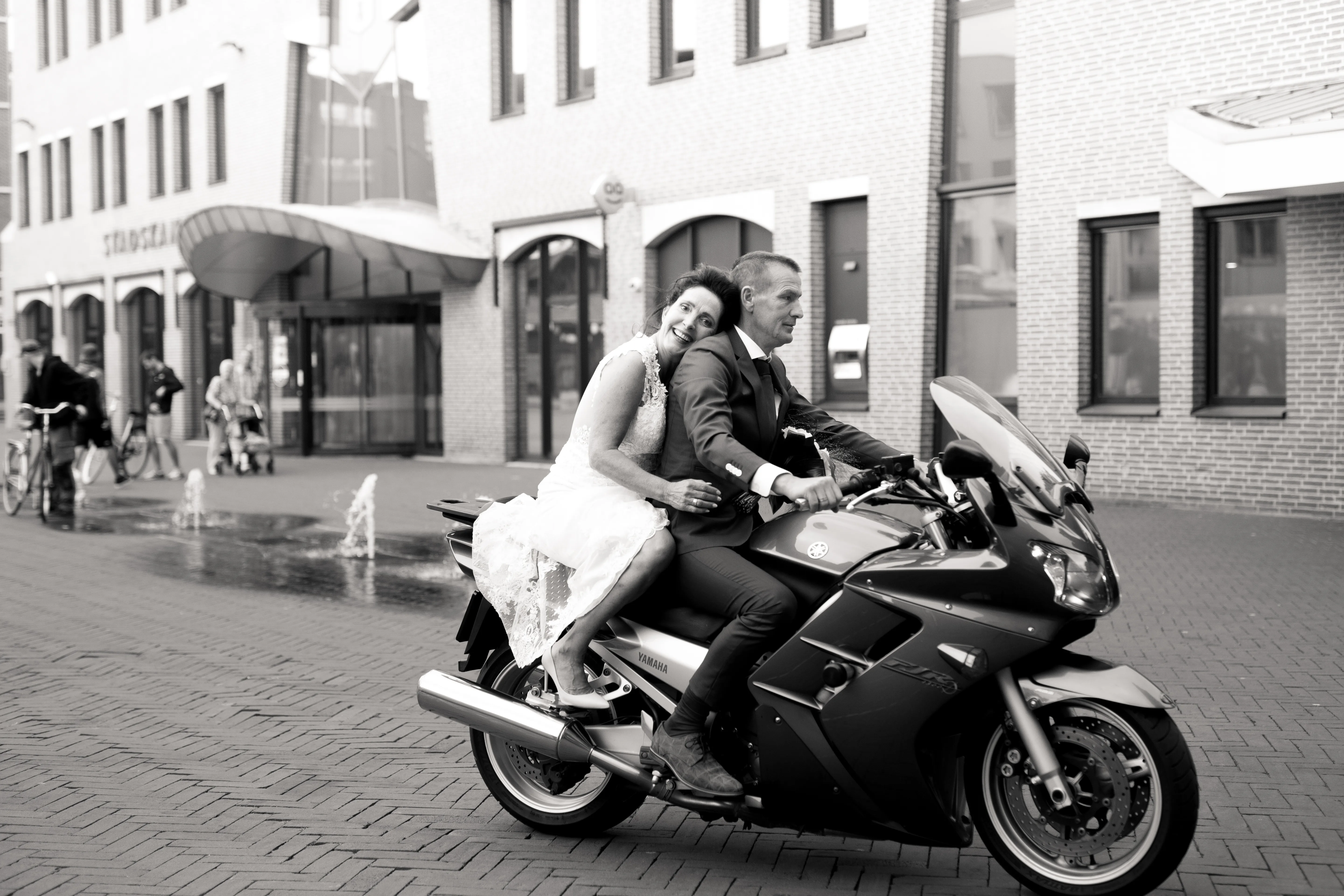 Het was een ongedwongen dag en iedereen heeft zo veel lol gehad. Mijn hoogtepunt? Het jawoord, maar ook de rit op de motor naar het gemeentehuis, nadat Erik me ‘s ochtends bij ons thuis had opgehaald!”