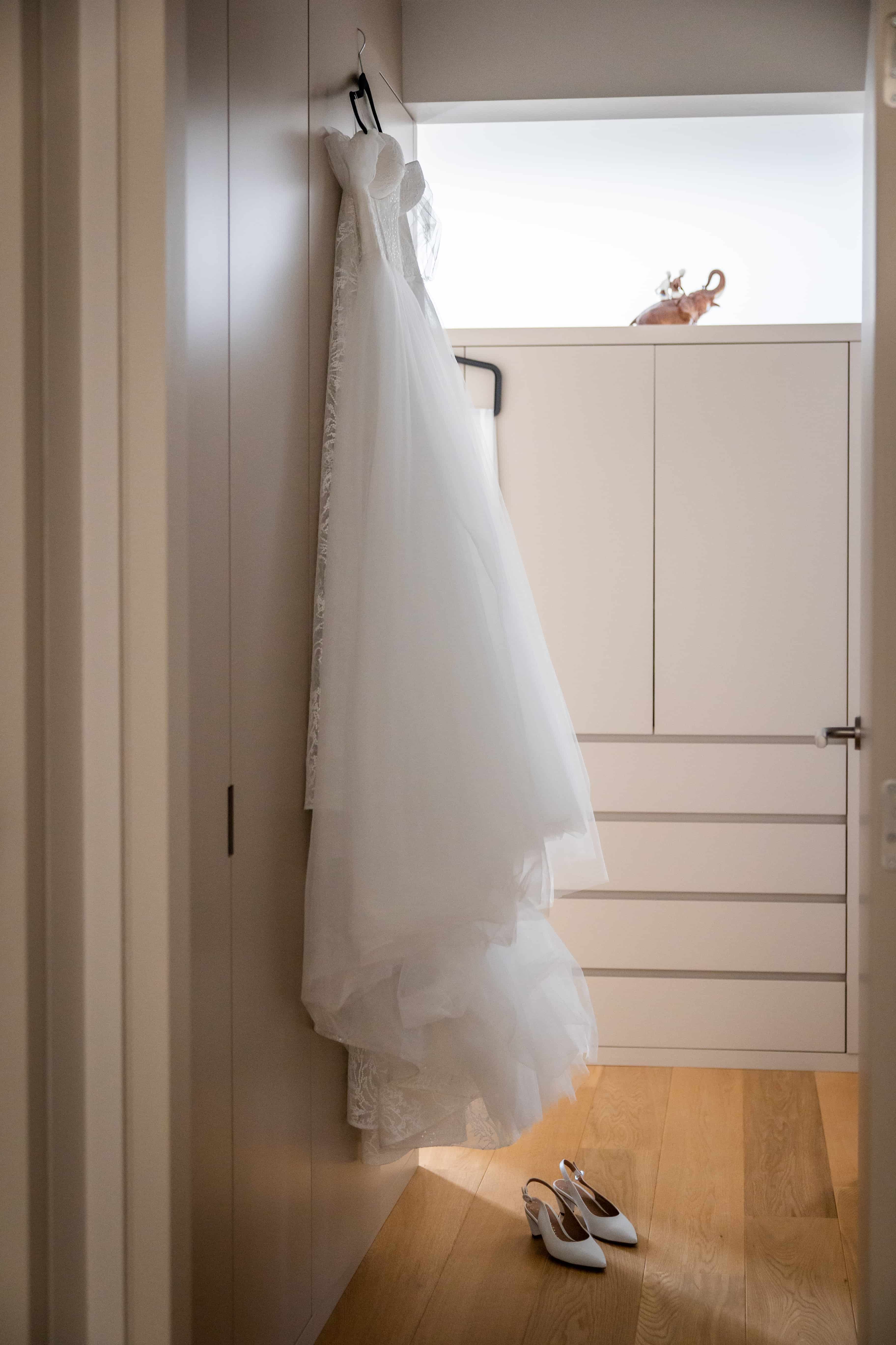 “Op de ochtend van onze bruiloft maakte ik me samen met mijn bruidsmeisjes in mijn ouderlijk huis klaar terwijl Michiel de avond daarvoor al naar zijn ouders was vertrokken. Toen hij daar klaar was, is hij naar mij vertrokken.” Eenmaal bij Manon aangekomen, was het tijd voor de first look. “Ik vond dit echt het spannendste moment van de dag. Ik had geen idee hoe hij eruit zou zien, ik wist niet eens de kleur van zijn kostuum. Hij wist ook niets van mijn look. Toen ik hem zag, was ik vooral blij om weer samen te zijn” Ook Michiel vond het een spannend moment. “Ik voelde me zo gelukkig toen ik haar zag en dacht: dit is mijn Manon, in een echte prinsessenjurk.”