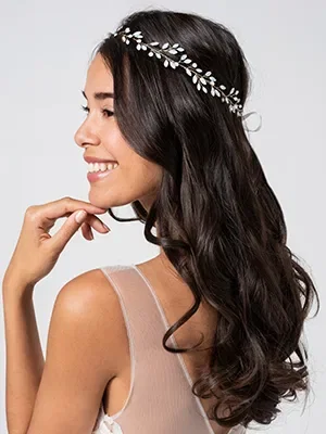 Een statement haarband is een trendy eyecatcher. Nog een trendy haaraccessoire voor een fantastische bruidslook is de krans. Ontzettend populair zijn designs met delicate strengen in bloem- of bladpatronen, versierd met parels en kristallen. Ze creëren een natuurlijke, romantische vibe.