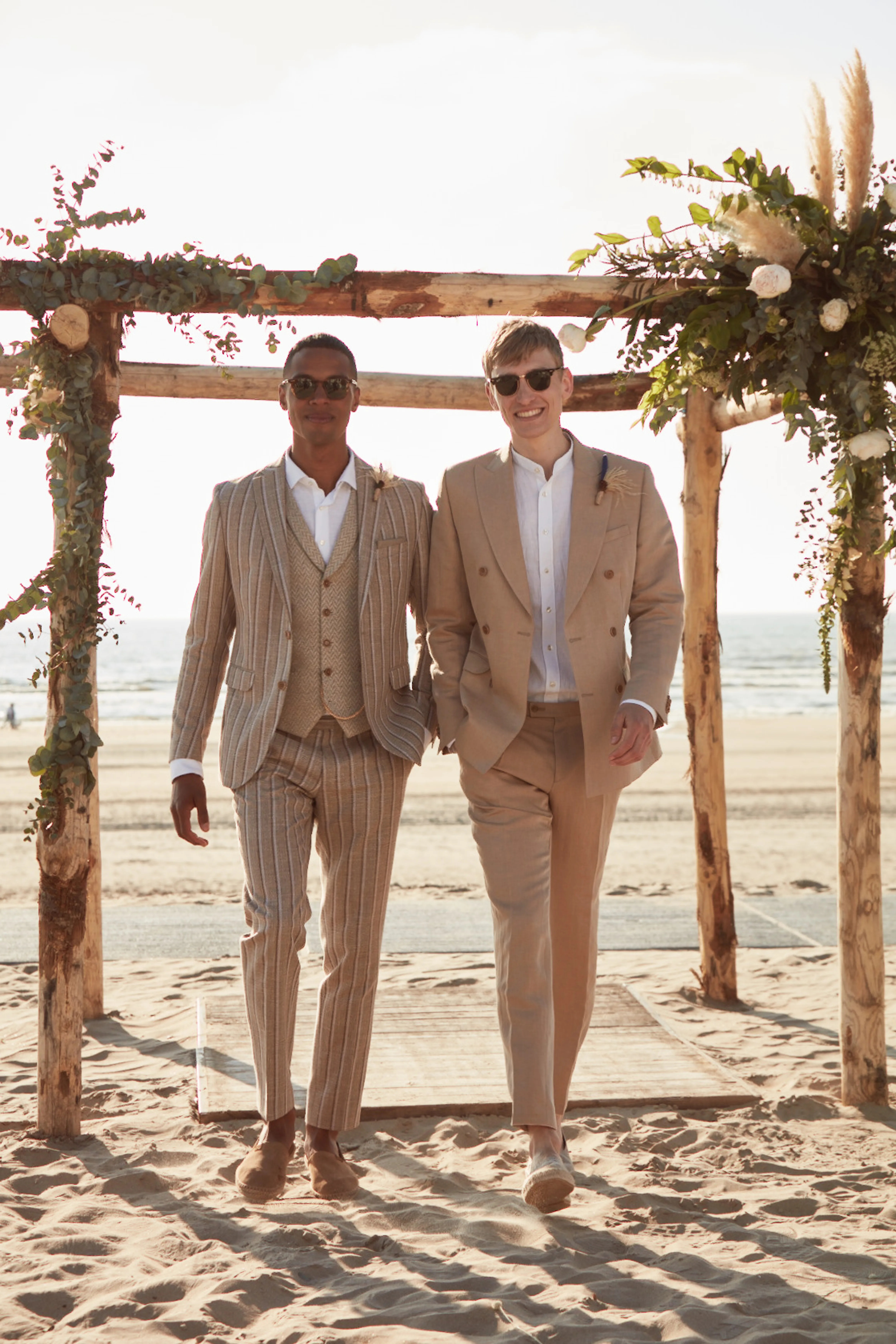 Een prachtige keuze voor de strandbruidegom zijn boho-, vintage en retro pakken. Ze stralen een zekere koelte uit en zijn tegelijkertijd lekker feestelijk.