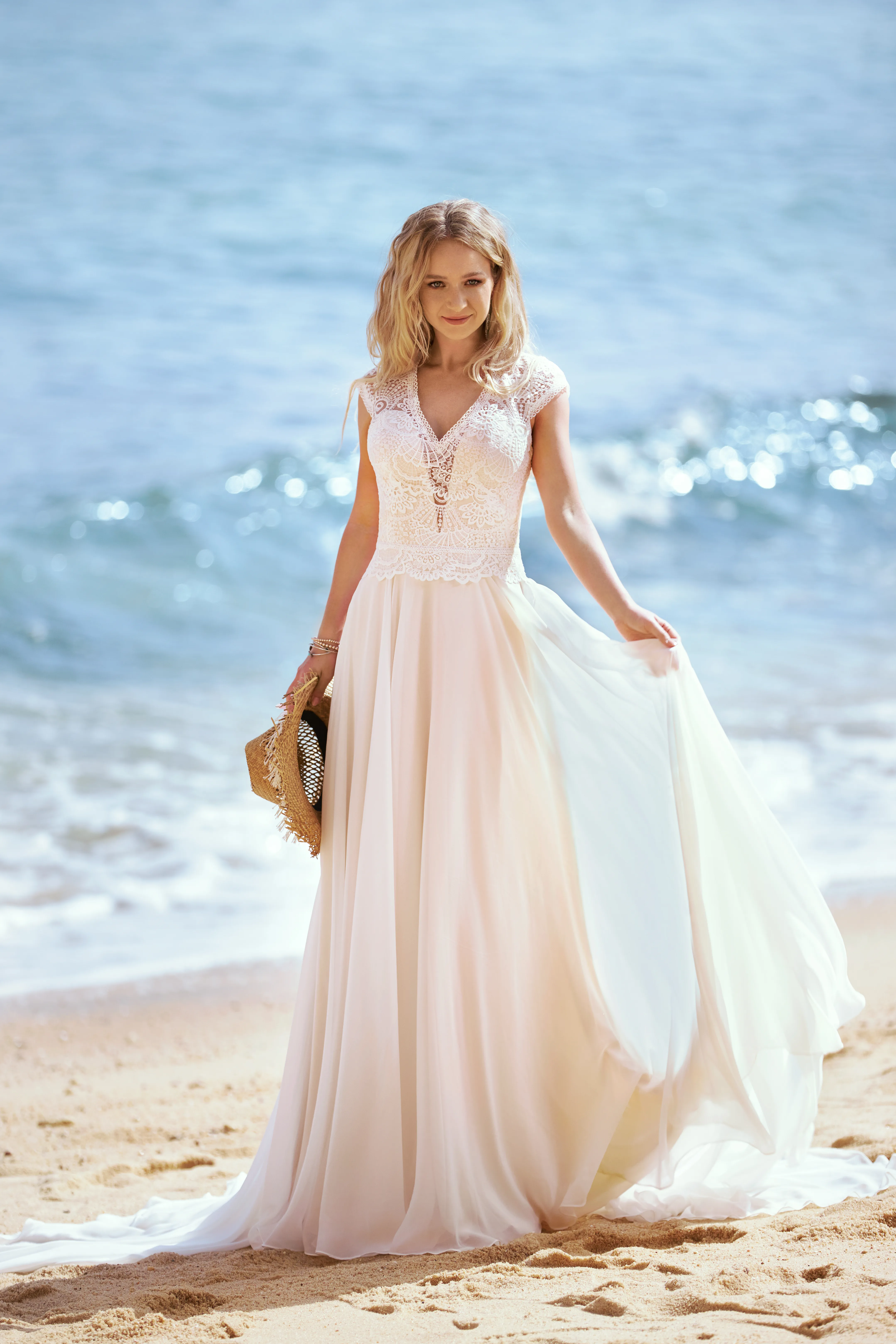 Of het nu gaat om een diep decoleté, een sensuele split of een sexy rugdecolleté – de hipste ontwerpen voor strandbruiloften overtuigen met flirterige details voor een wild romantische look.