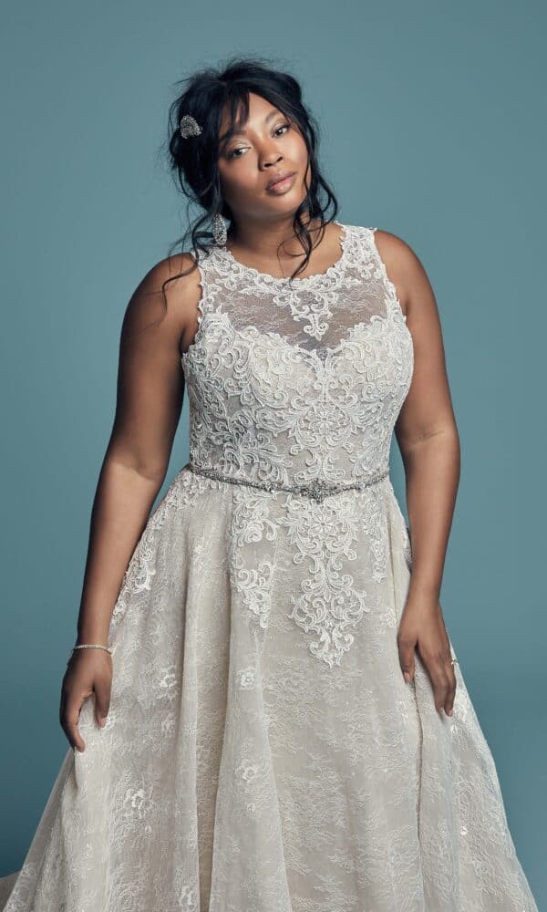 Losjes opgestoken haar met een fonkelende haarspeld past perfect bij een romantische kanten bruidsjurk.