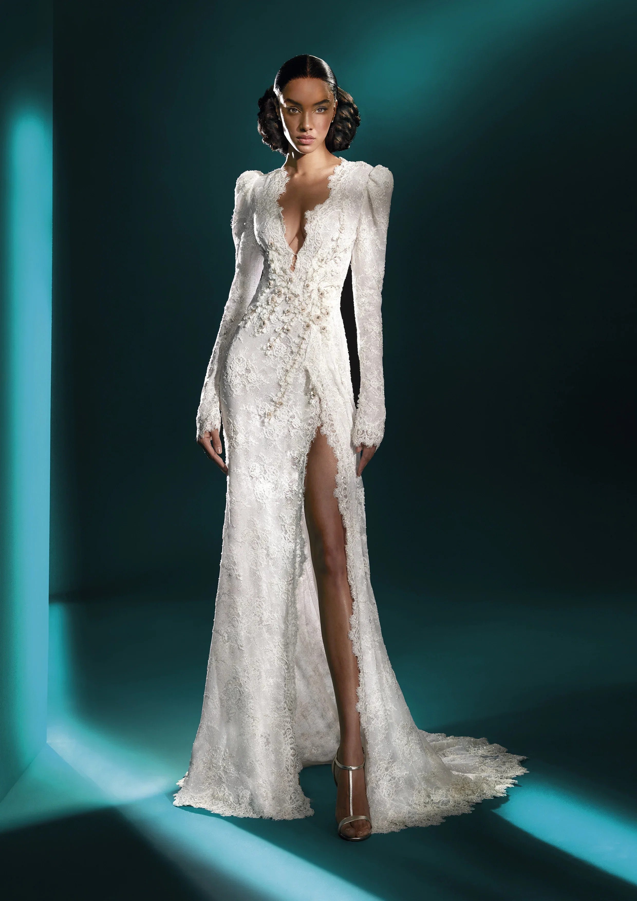 “De jurken die in Versailles worden gedragen, zijn luxe en schoonheid gaan definiëren”, zegt Alessandra Rinaudo, artistiek directeur van Pronovias Group. “Deze unieke collectie is een moderne interpretatie van een van de meest uitbundige hoofdstukken in de geschiedenis van de mode.” Met de legendarische ‘Spiegelzaal’ van Versailles en het koninklijke symbool van de ‘fleur-de-lis’ als uitgangspunt, ontwierp hij de jurken in oogverblindende Italiaanse stoffen, Frans kantwerk en handgemaakte kralen en borduurwerk. De collectie bestaat uit 36 jurken.