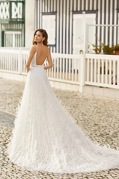 Rosa Clará blijft trouw aan haar minimalistische stijl met een verleidelijk karakter. Dromerige prinsessendesigns worden in de nieuwe collectie gecombineerd met trendy details zoals veren en kant.