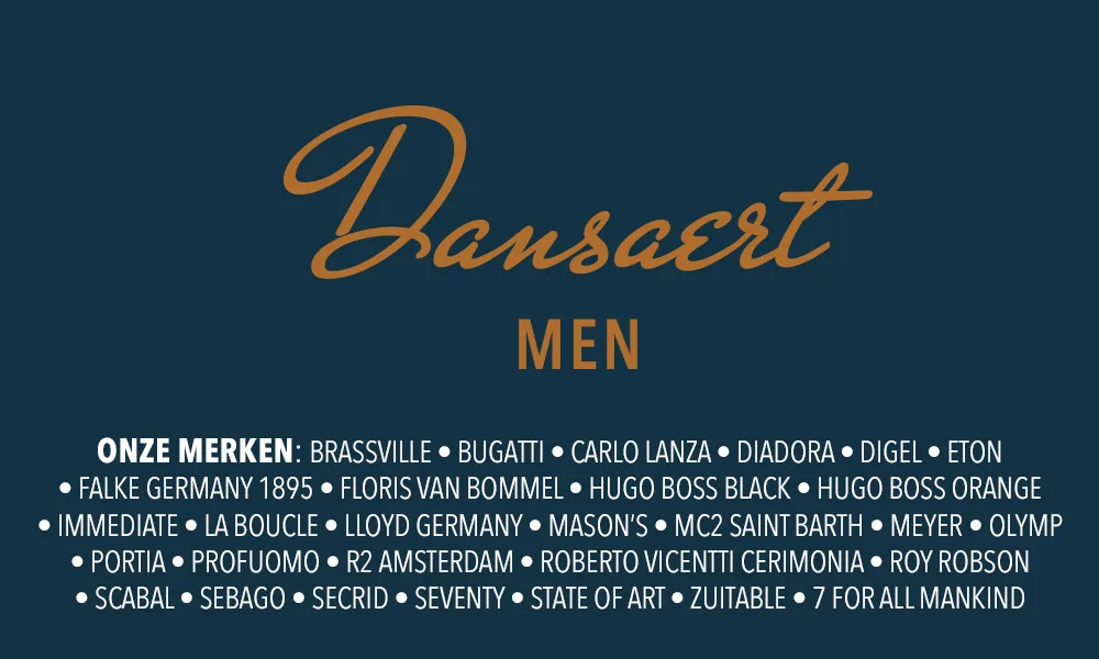 Bij Dansaert Men, dé stijlvolle herenboetiek in Lennik, draait alles om kwaliteit, vakmanschap en een persoonlijke aanpak. Een bijzondere gelegenheid vraagt om een unieke outfit en daarom bieden ze een uitgebreide collectie ceremoniekleding van topniveau. Of je nu een trouwkostuum zoekt, een outfit voor een bijzondere gelegenheid of een klassiek pak voor dagelijks gebruik, bij Dansaert Men ben je aan het juiste adres.