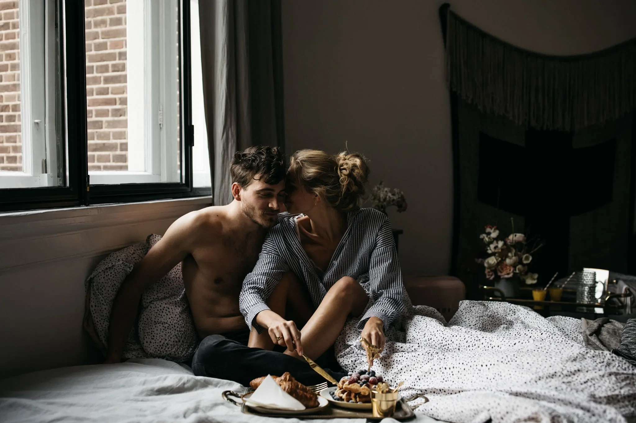 // Vergeet niet om te relaxen! De eerste ochtenden ā of middagen, avonden of hele dagen ā als newlyweds kunnen jullie ook gewoon in bed doorbrengen.