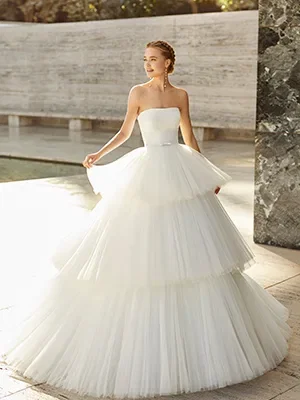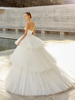 “Bij Rosa Clará Haute Couture zijn de ontwerpen geïnspireerd door moderne architectuur en strakke, minimalistische modellen. Uitzonderlijke stoffen zoals zijdesatijn, angel skin, crêpe georgette, Italiaanse cloque en tule met stippen bepalen de verfijnde, romantische collectie. De Rosa Clarácollectie combineert minimalisme en sensualiteit in hedendaags jurken, deze versterken het silhouet. Rosa Clará Soft laat zich van haar meest magische en subtiele kant zien met zijden jurken gemaakt van mousseline met sensuele splitten in de rok. Boho-bruiden kunnen uitkijken naar de Rosa Clará Bohèmecollectie. Deze ontwerpen hebben artistieke details van onder andere kant, met een luxueuze en delicate boho-stijl.”