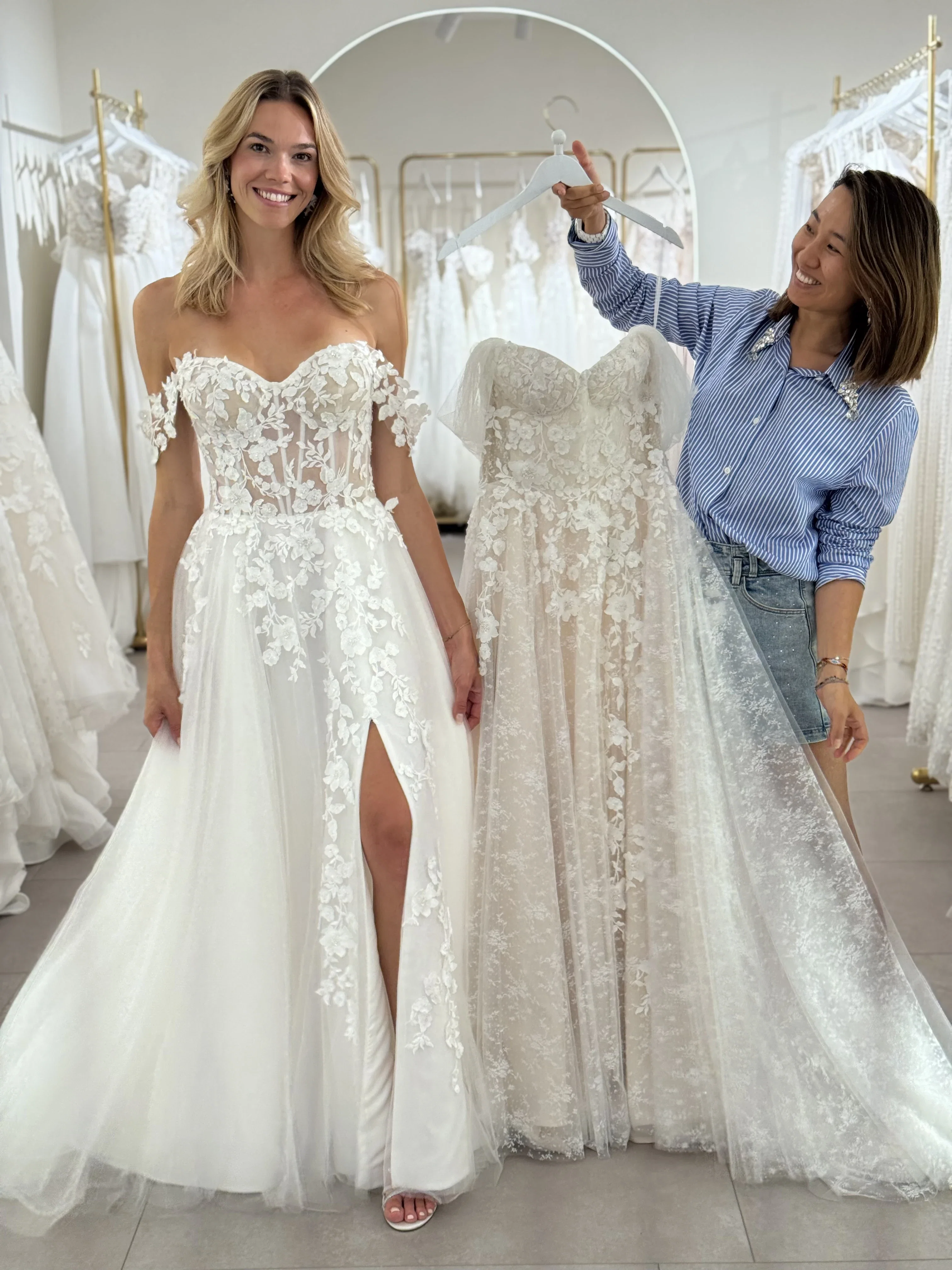 Heb je exact in gedachten hoe jouw droomjurk eruit moet zien? Dan biedt Casablanca bijna eindeloze mogelijkheden om je jurk volledig op maat te maken. In een bezoek aan de Bruidswinkel White Silhouette (gespecialiseerd in Casablanca-jurken) laat bridal-stylist Fan Xia zien hoe maatwerk in München eruitziet. Ze werkt al tien jaar met Casablanca-jurken en heeft in die tijd veel bruiden blij gemaakt met persoonlijke aanpassingen. “Als een bruid haar eigen droomjurk wil ontwerpen, bijvoorbeeld door mouwen toe te voegen of weg te laten, de halslijn aan te passen of zelfs de stof te vervangen, dan is dat mogelijk!”