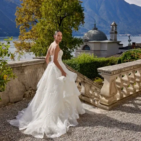 L’Amore is een collectie die tijdloze elegantie uitstraalt, met een vleugje Italiaanse luxe. Elke jurk is een perfecte combinatie van klassieke romantiek, ideaal voor de verfijnde bruid. Verwacht volumineuze ruches, prachtige slepen en glamourous kralen, maar ook klassieke stoffen zoals brokaat en kordelkant. Gestructureerde korsetten, moderne halslijnen en elegante basque taille maken L’Amore de ideale keuze voor de moderne bruid.