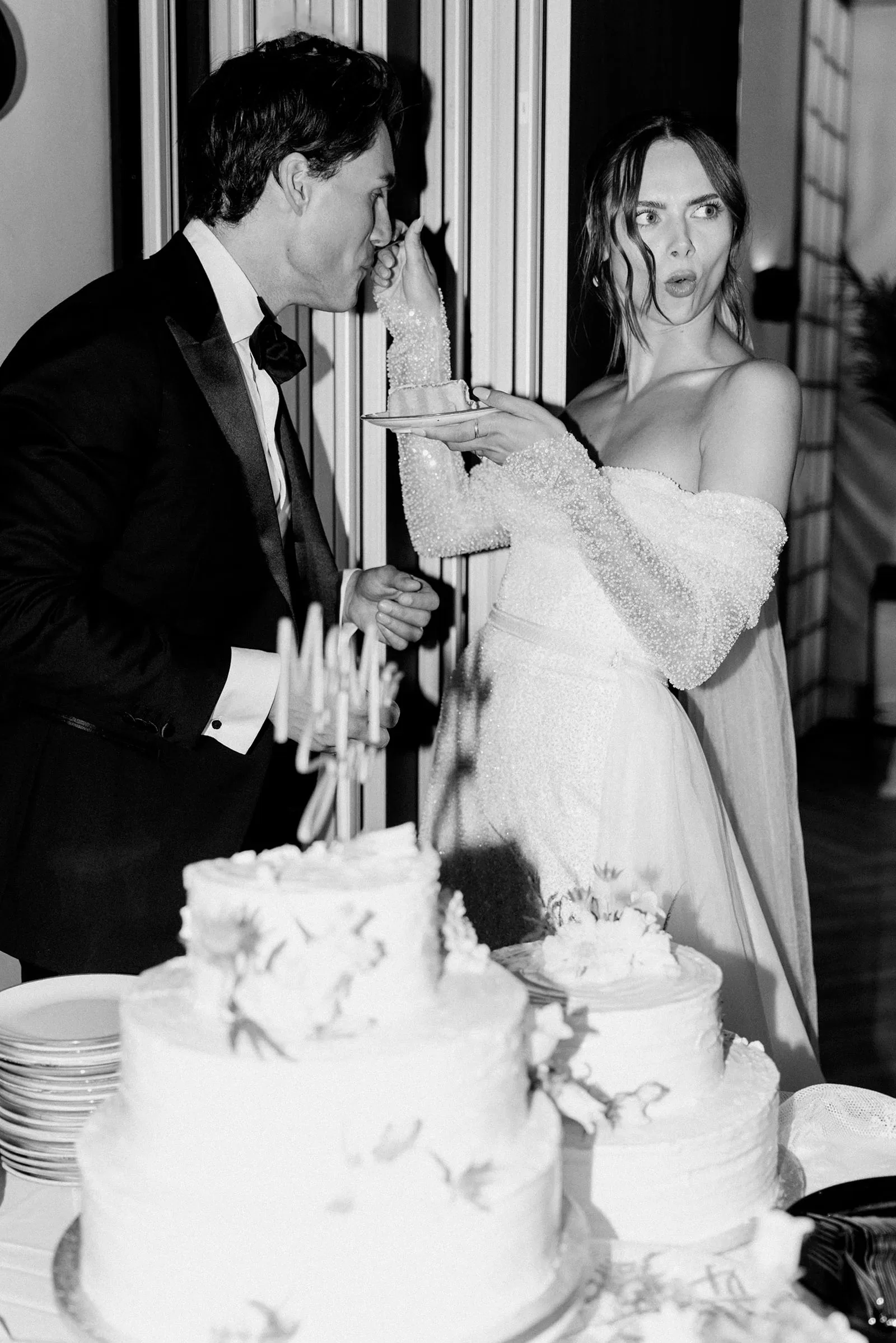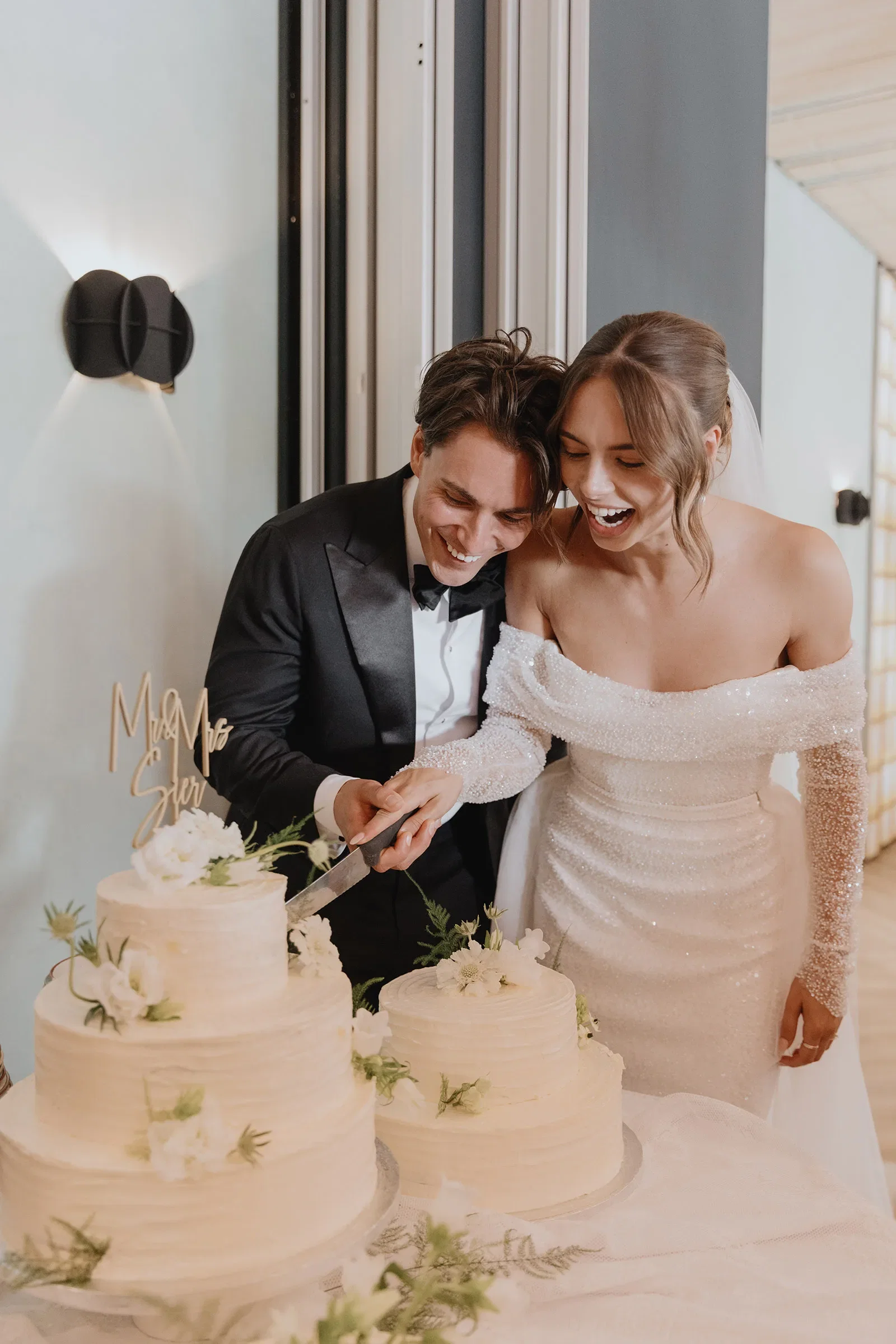 Voor de receptie keerden ze met hun gasten terug naar Volendam. Julia: “Ik heb een eigen dansschool en tijdens de receptie kwamen alle kindjes langs om op te treden. Ze leefden er al een hele tijd naartoe dat hun juf ging trouwen. Verder waren ook onze buren en andere kennissen gekomen, supergezellig. Het aansnijden van de taart was net iets anders dan normaal, ik heb namelijk een glutenallergie, dus hadden we twee taarten. De ene taart was met karamel-zeezout en red velvet, terwijl de andere van chocolade was gemaakt. Onze taarten hadden we kaal besteld en laten versieren door een banketbakker vriendin.”