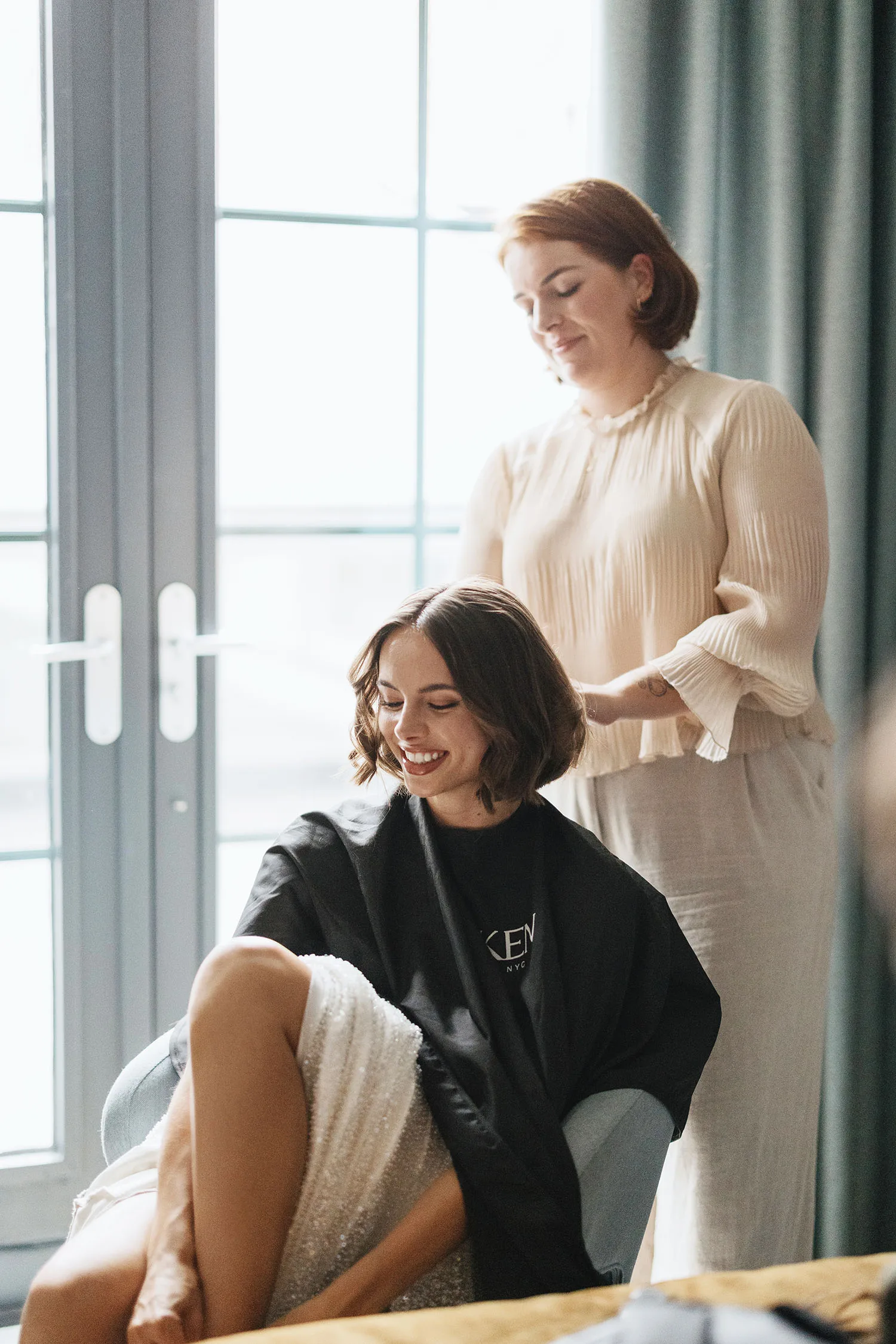 Na het diner had Julia een bijzondere verrassing voor Cornel en hun bruiloftsgasten gepland. Julia: “Ik sloop stiekem naar de bruidssuite, waar wij die avond ook zouden gaan slapen, om mijn haar te laten knippen! Voor de bruiloft had ik het lang laten groeien, maar ik vond de switch naar het feest en de tweede look wel een goed moment om weer kort te gaan. Er was niet veel tijd voor het knippen en krullen, maar het was gelukt! Cornel weet dat ik weleens iets geks doe en hij had mij al eerder met kort haar gezien, hij was dus niet echt geschrokken. Onze gasten waren wel enorm verrast!”