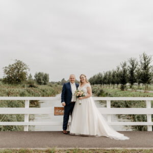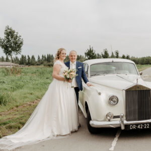 “Als bedankje wilden we iets aparts en blijvend; bruidsuikers zijn op een gegeven moment toch weg. Daarop kwamen we op het idee om winkelwagenmuntjes aan een sleutelhanger te geven. Dat is blijvend en superhandig. Aan een kant van het muntje stond ‘Bedankt’, op de andere kant een plaatje van een bruidspaar, onze namen en onze trouwdatum. Op het dankkaartje schreven we: ‘Elke keer als je deze gebruikt, denk je aan ons’.”