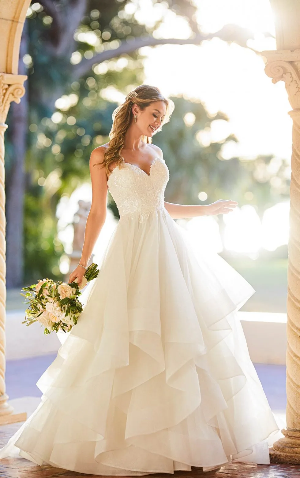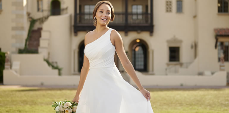 Deze jurken van Stella York, die de ware schoonheid van eenvoud vastleggen, combineren moderne statements en klassieke elegantie met creatieve, modieuze stijlen. Bijzondere halslijnen, zoals de illusie micro-plunges en asymmetrische bandjes accentueren het gezicht, terwijl flatteuze elementen, zoals delicate plooien en gestreepte taillelijnen deze jurken meer detail geven dan je op het eerste gezicht zou denken!