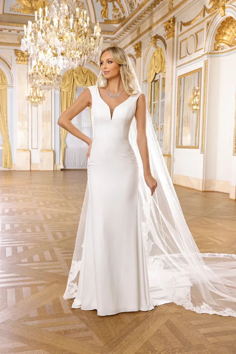 Deze trouwjurken van Ladybird zijn clean, chic en elegant. De eerste jurk heeft een fit & flare silhouet en is versierd met luxueuze kanten inzetstukken op de vaste lange mouwen. De tweede jurk is gemaakt van crêpe en heeft een sexy, diep uitgesneden decolleté. Eenvoudig en stijlvol, met minimale elementen.