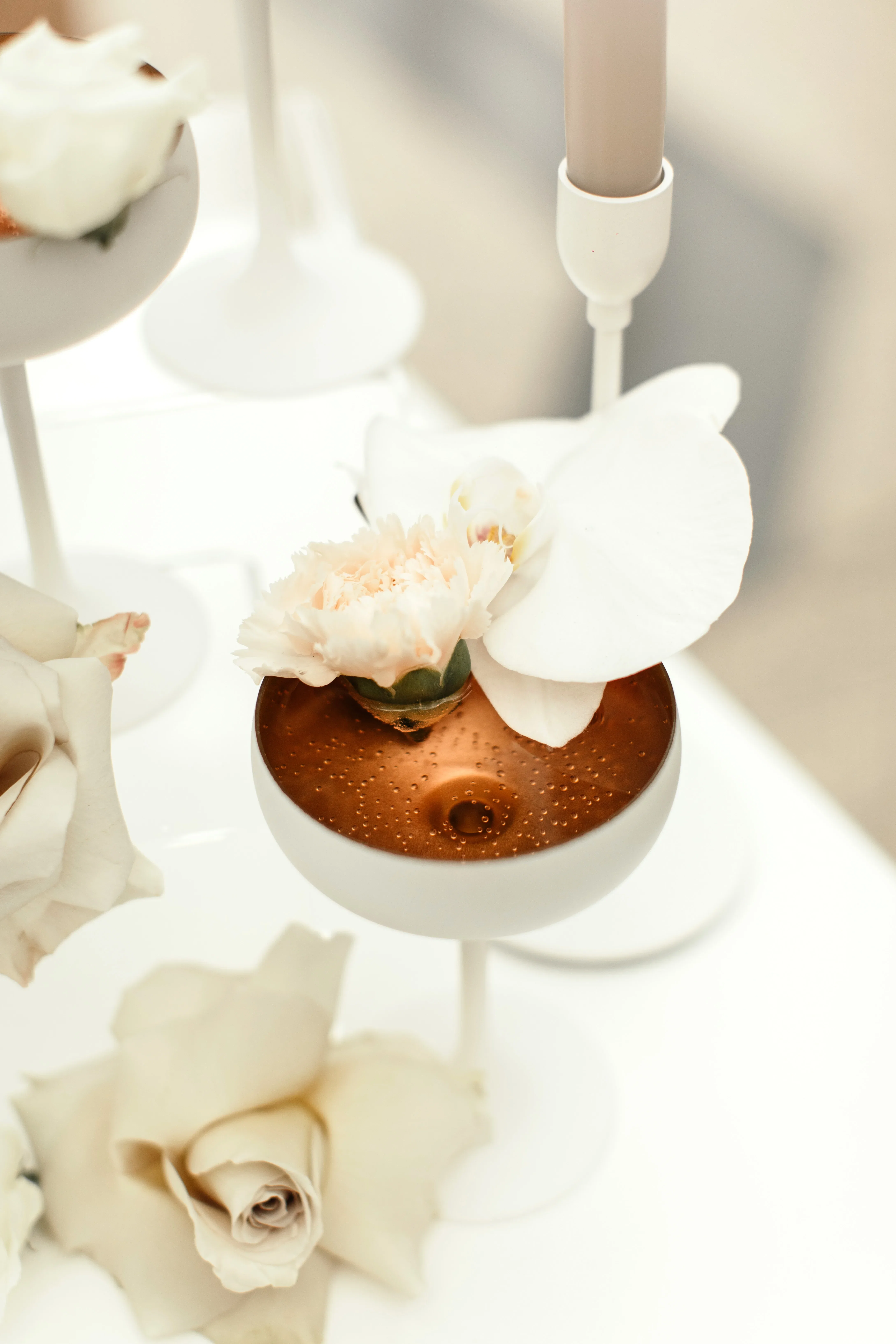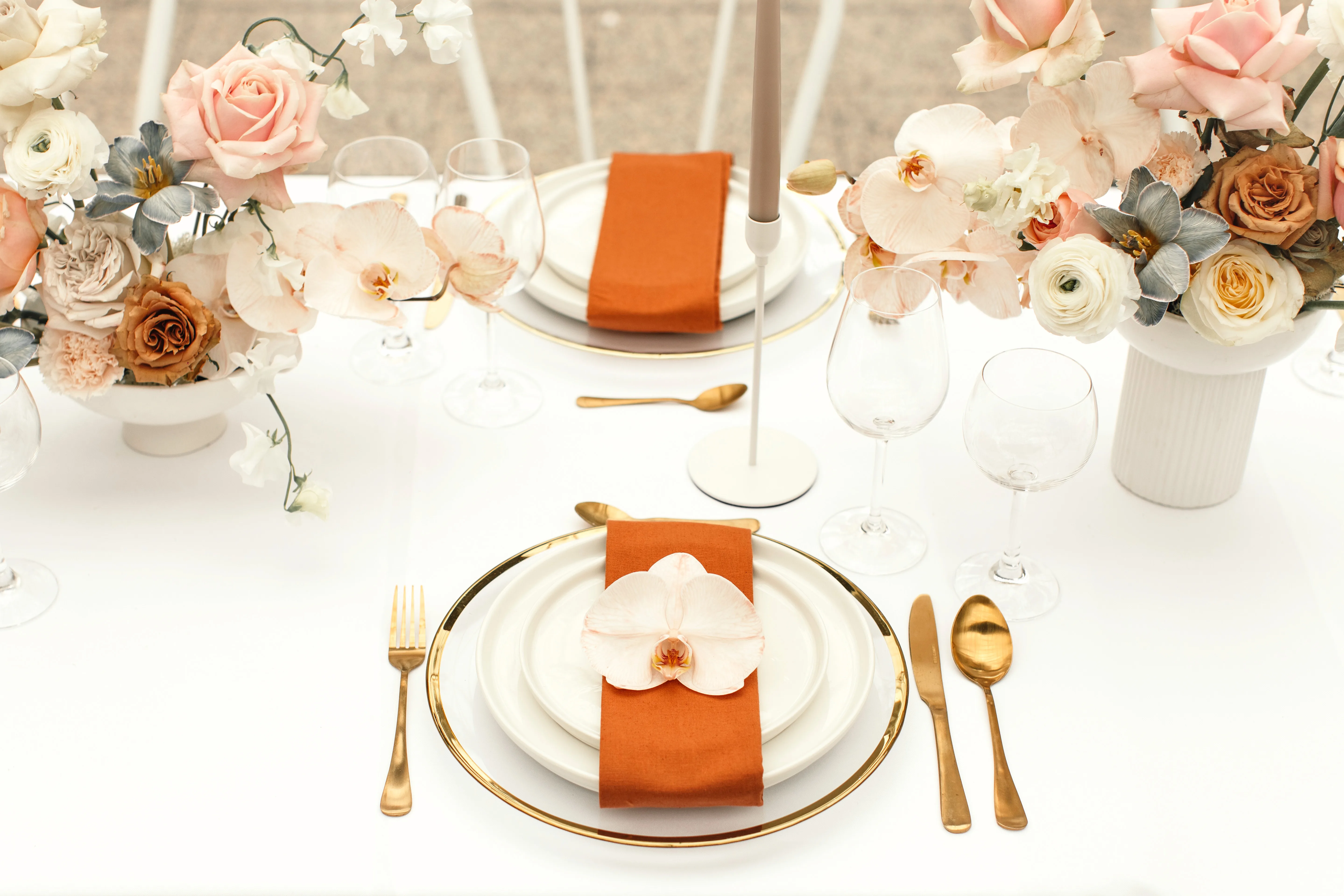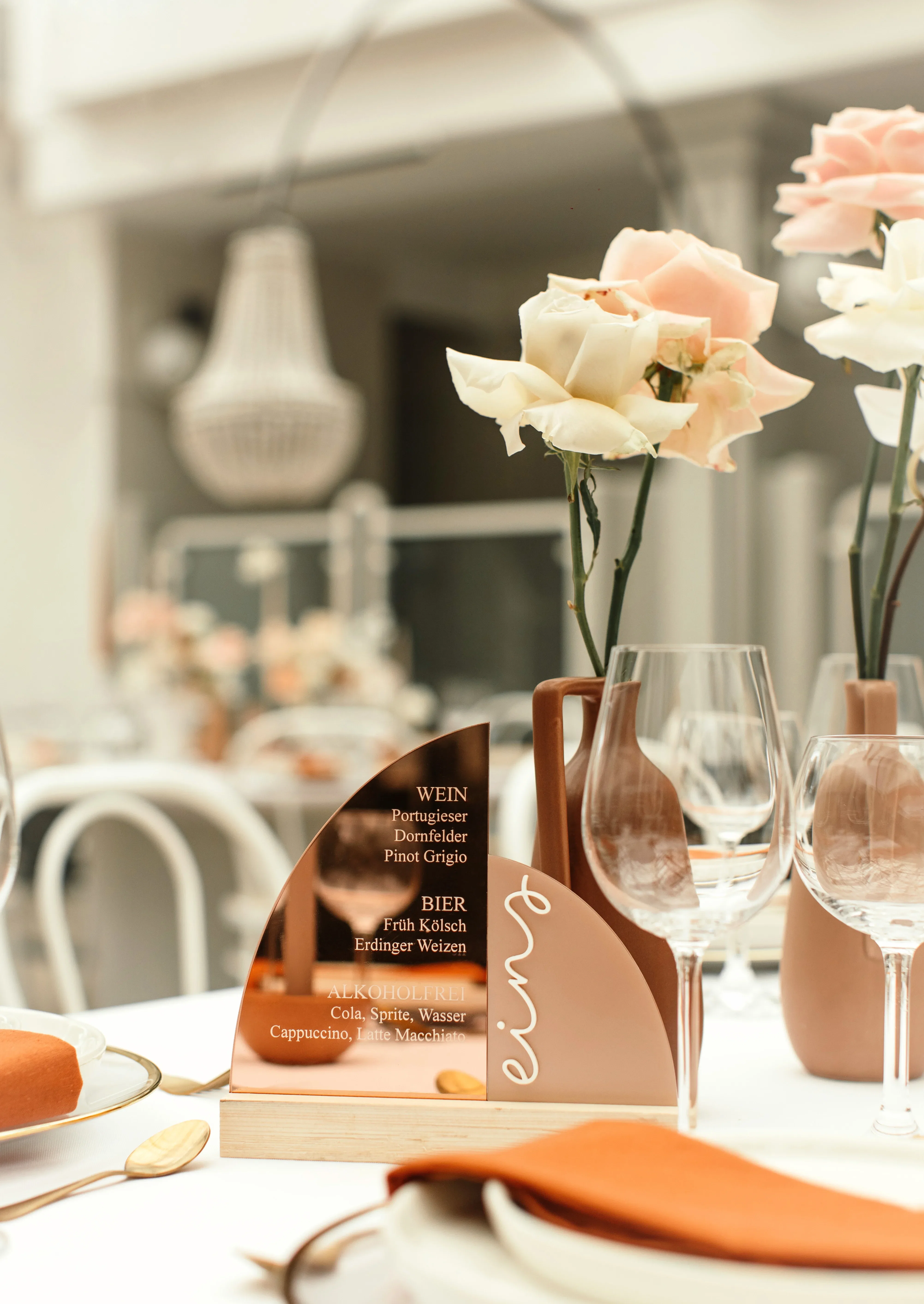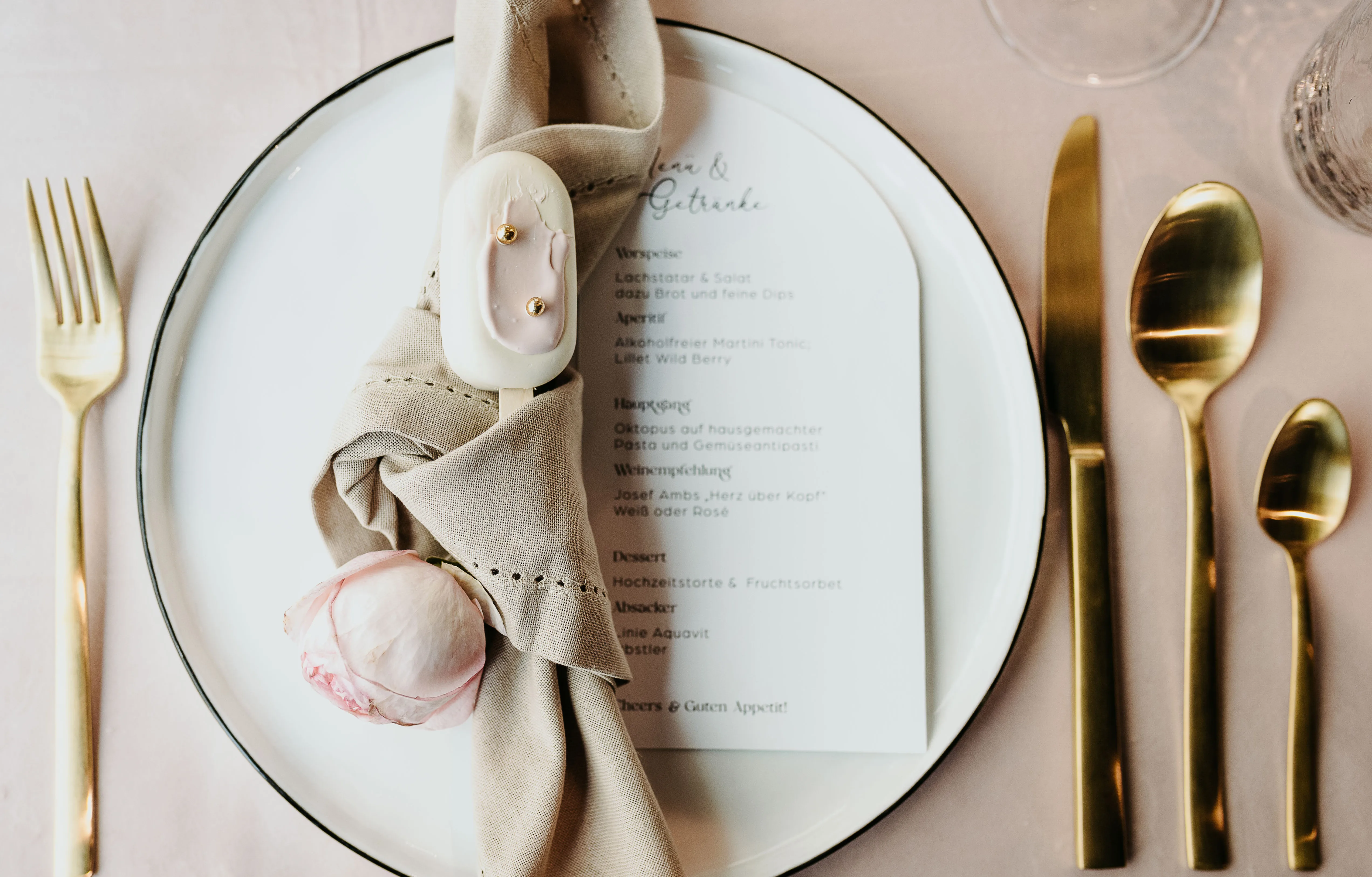 Hoe passen glamour en snoep bij elkaar? Supergoed, zoals dit decoratieconcept in Ibiza-stijl bewijst. Bijzonder aan de trend is de chique candybar met allerlei sierlijk versierde snoepjes. Naast schitterend wit voegen fluweelachtig karamelbruin en chique roségoud kleurrijke accenten toe.