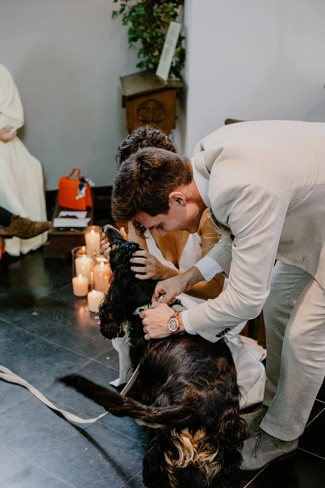 Gelukkig kregen ze de support van hun dierbaren familie, vrienden en hun hondje Omer. “Hij had een halsband om met daaraan een zakje. In dat zakje zaten onze ringen. Thuis hadden Sebastian en ik al geoefend met het omschuiven van de ringen, dus dat ging helemaal soepel.”