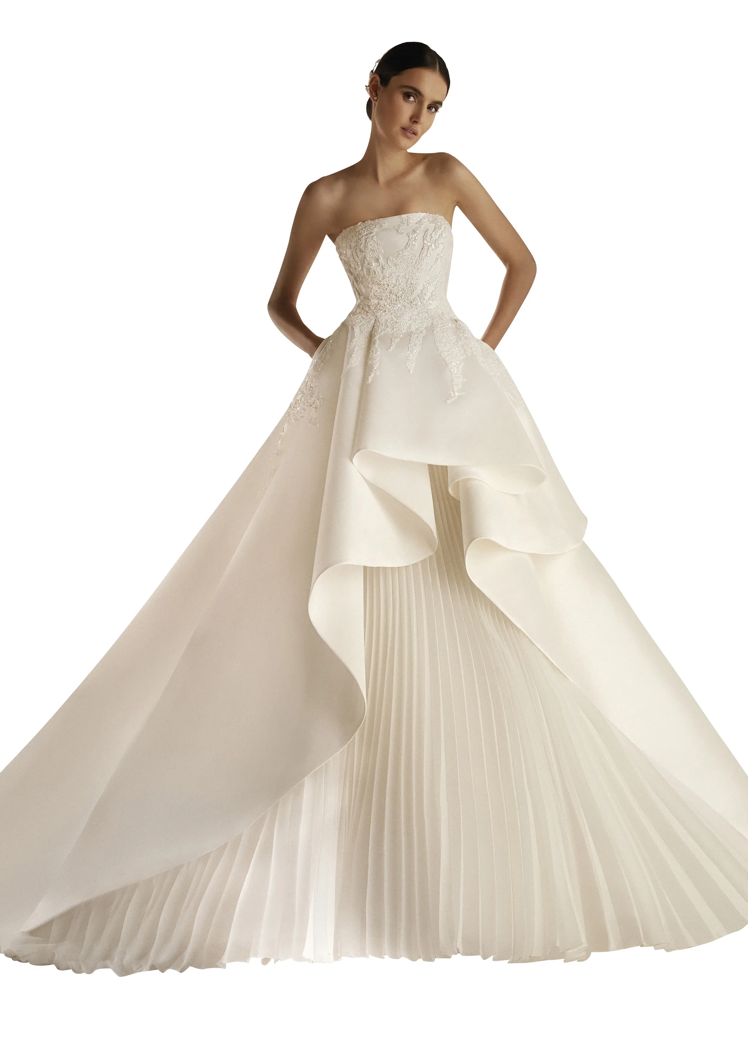 Glinsterende kristallen, donzige veren en ruches van volant-organza – de trouwjurk van Katniss Everdeen biedt prachtige én modieuze inspiratie.
