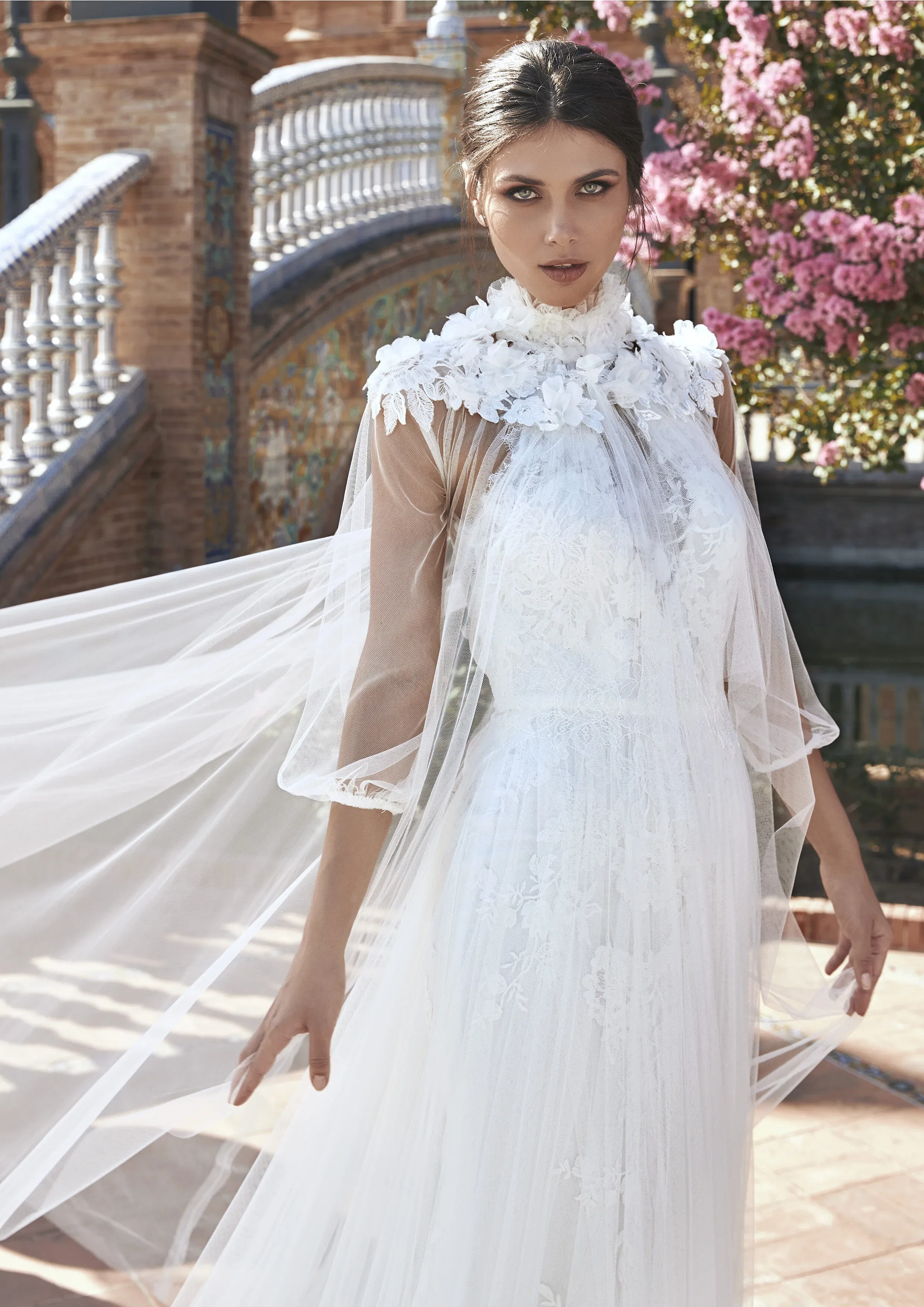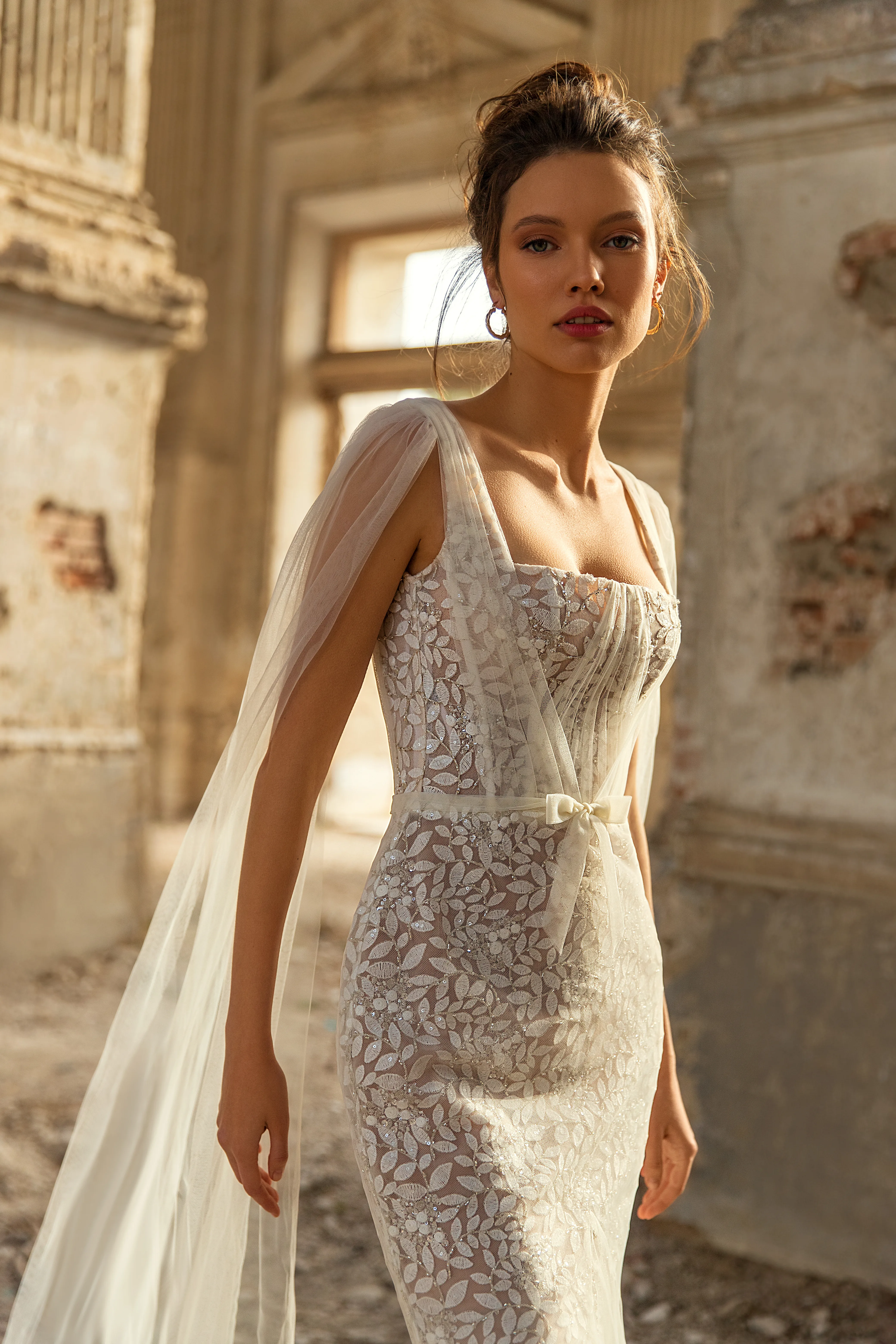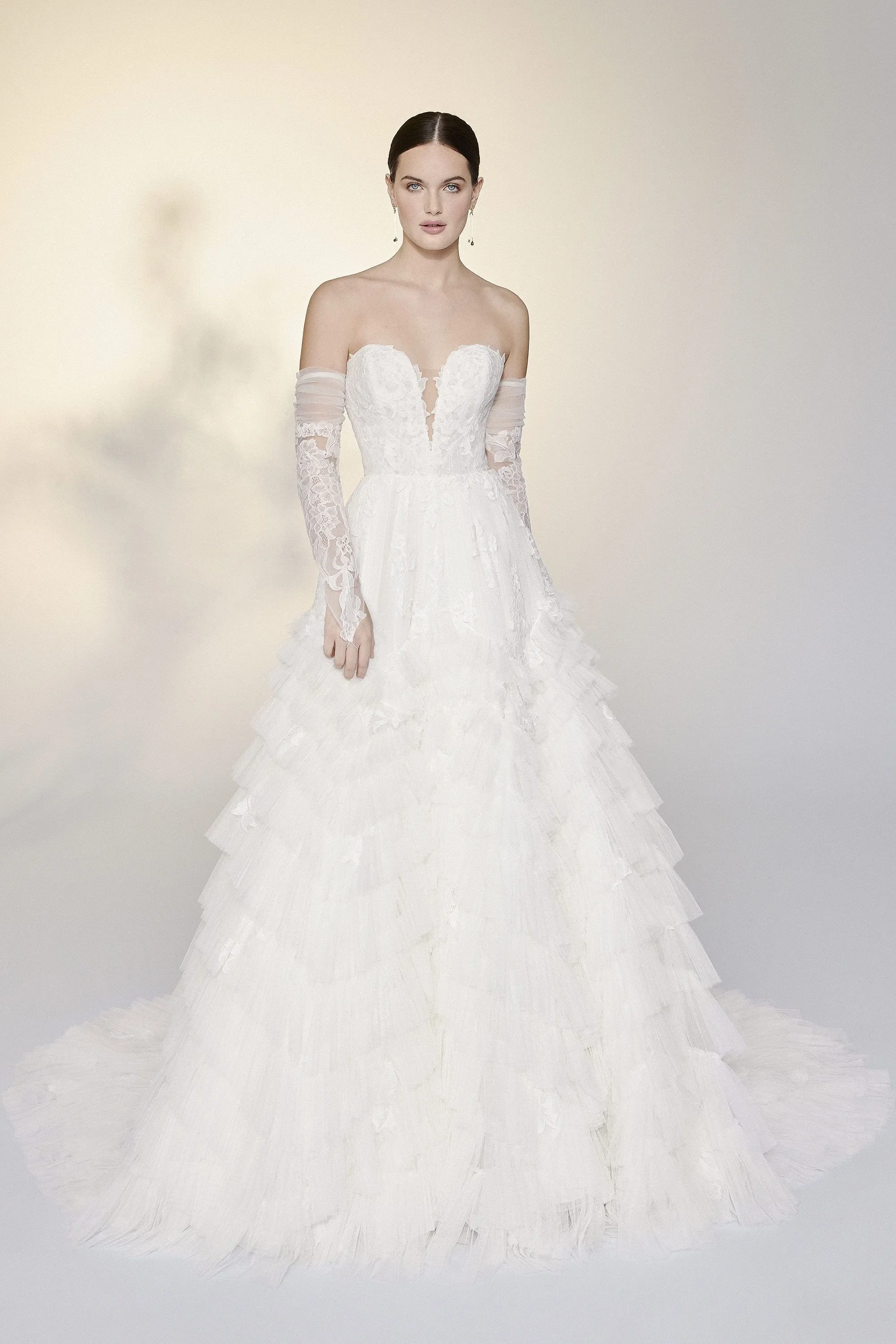 Capes, bridal jackets en afneembare mouwen: wij hebben nog nooit zo veel variaties gezien als dit seizoen en wij zijn fan! Draag bijvoorbeeld een cape tijdens de ceremonie, een bridal jacket tijdens de fotoshoot, afneembare mouwtjes tijdens het diner en laat alles poespas vallen tijdens het feest. Zo verras je je gasten iedere keer met een totaal andere look, maar met dezelfde droomjurk.