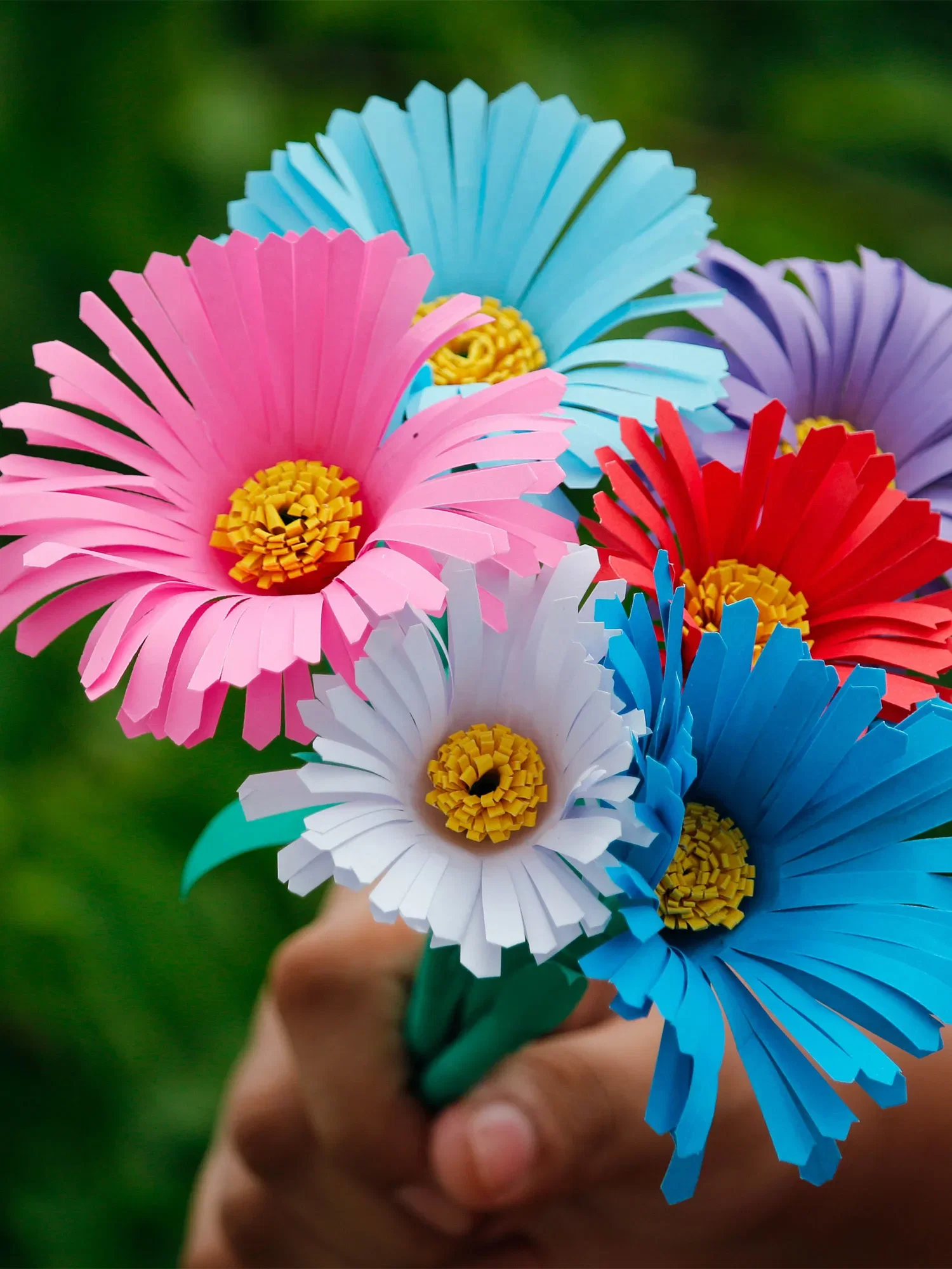 Iets voor de eeuwigheid – dat hoeft niet alleen de liefde voor je partner te zijn, maar kan ook je favoriete huwelijksaccessoire zijn: een bruidsboeket van papieren bloemen. Aangevuld met witte fluwelen linten en een beetje groen ontstaat er een uitzonderlijk mooi bruidsboeket. Wil je het extra bijzonder maken? Maak de bloemen van kranten die zijn verschenen op een voor jullie belangrijke dag, bijvoorbeeld de dag van jullie eerste date of jullie eerste zoen. Ga je voor een Disney-themabruiloft? Maak dan je boeket uit sprookjesboeken.