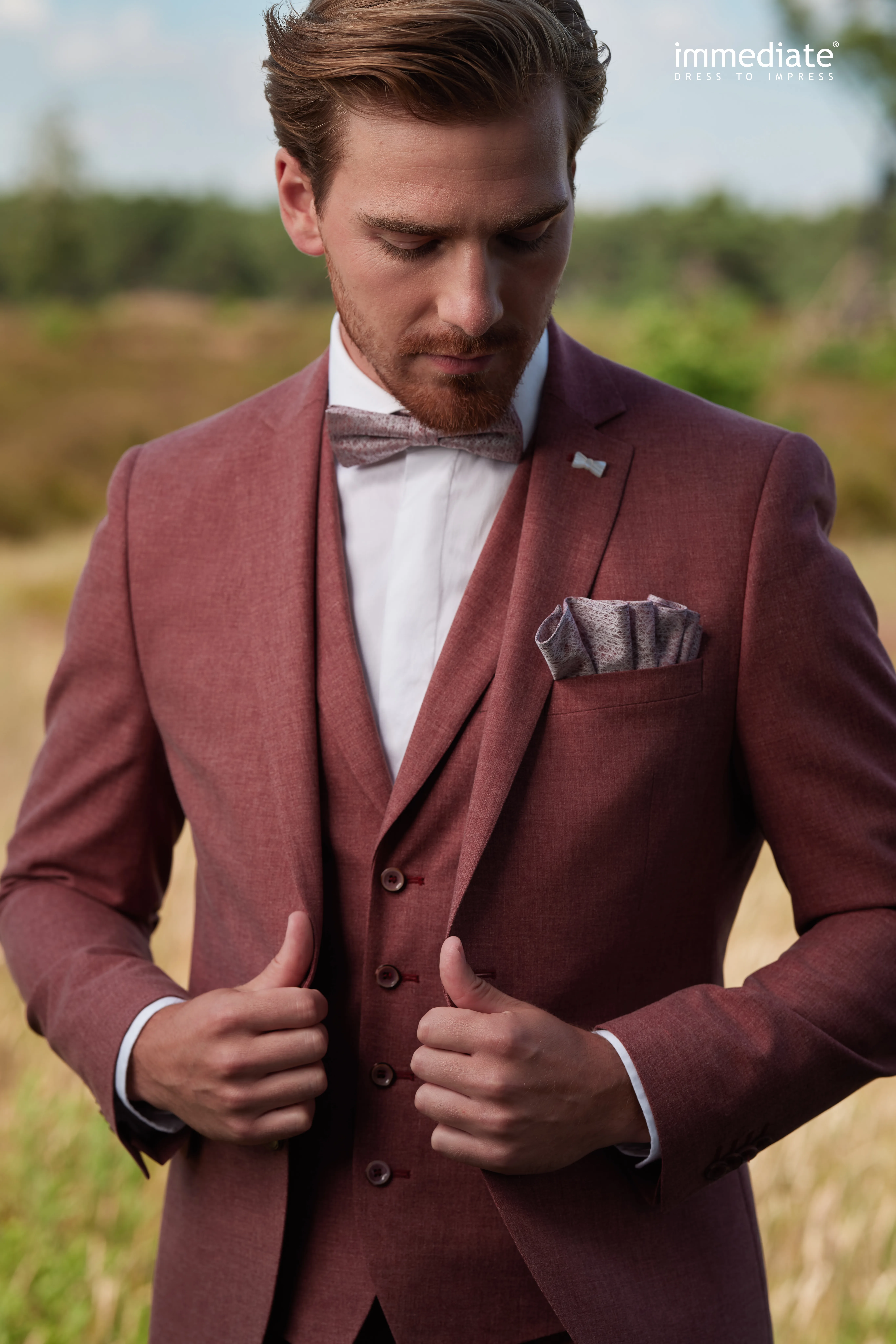 De Immediate Fashion collectie biedt een palet aan verrassende kleuren. Van ingetogen chic tot onweerstaanbaar trendy. De Italiaanse pasvorm in combinatie met rijke, soepele stoffen zorgen voor een perfect match. Immediate Fashion werkt met plezier aan hét perfecte pak voor de mooiste dag van je leven! De winnaar mag een kostuum uitzoeken t.w.v. maximaal 850 euro. Indien de aankoopsom hoger is kun je als winnaar het verschil zelf bijbetalen.