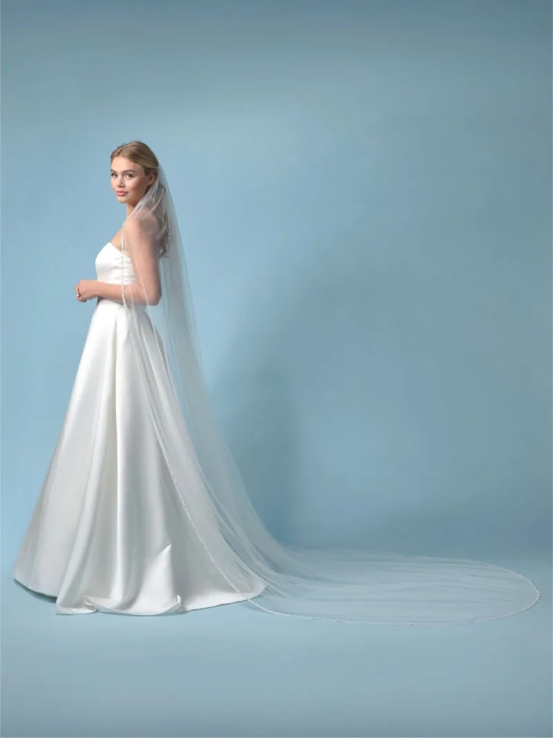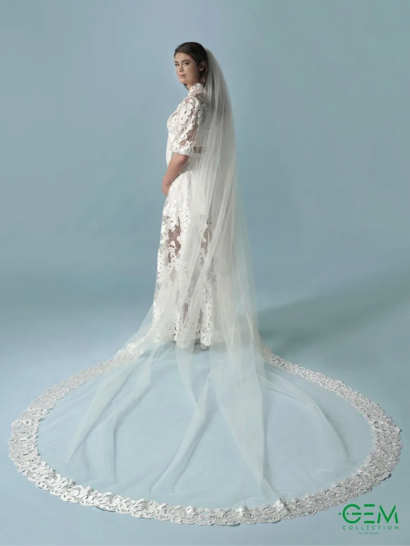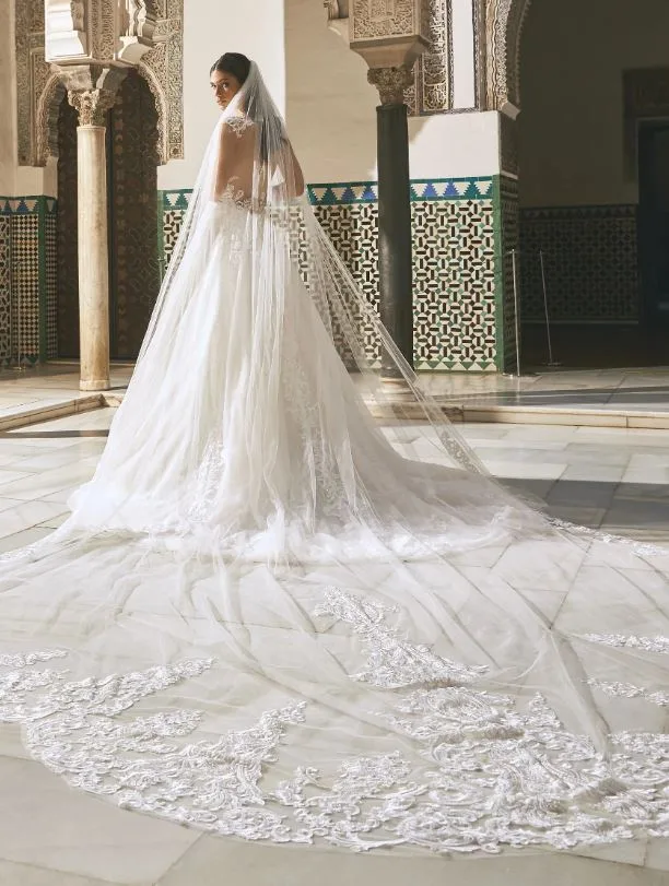 De kathedraalsluier is de langste sluier, die zich uitstrekt tot enkele meters achter de bruid. Dit past uitstekend bij lange trouwkleden met een sleep.