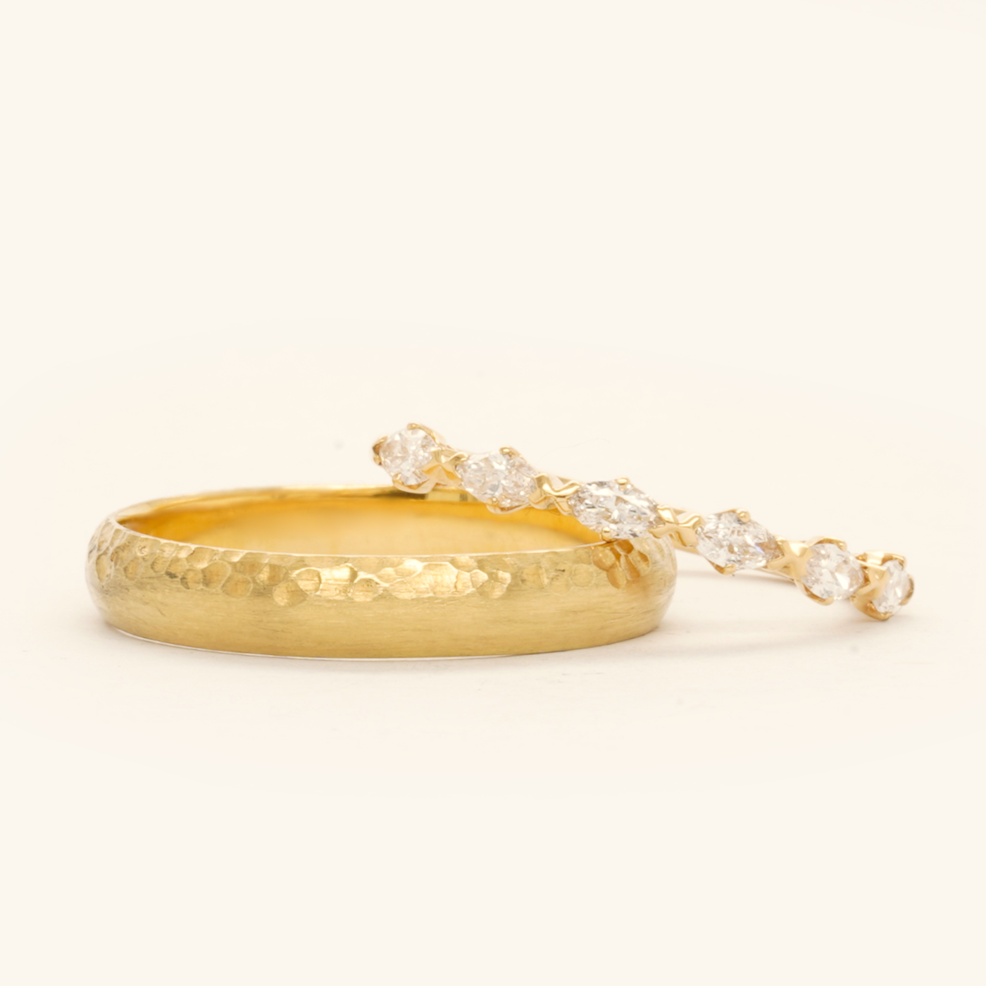 Met een diepe voorkeur voor kwalitatieve materialen, zoals 18 karaat goud, kleurstenen en edelstenen, streven Matthias en Ine ernaar om niet alleen sieraden te maken, maar ook verhalen te vertellen. Elk stuk wordt doordacht vormgegeven, met aandacht voor detail en een streven naar tijdloze elegantie.